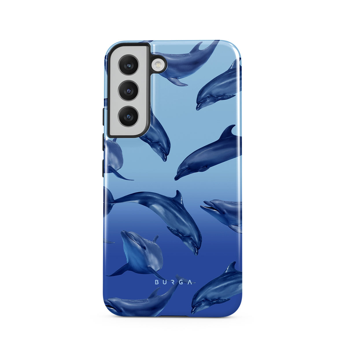 Our Ocean Cowboy Samsung Galaxy S22 Plus phone case features majestic dolphins soaring across a sapphire ocean, symbolizing the untamed beauty and mystery of the deep blue. It's a call to the wild, right in your hands.