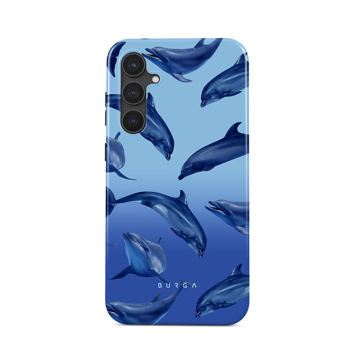 Our Ocean Cowboy Samsung Galaxy S23 FE phone case features majestic dolphins soaring across a sapphire ocean, symbolizing the untamed beauty and mystery of the deep blue. It's a call to the wild, right in your hands.