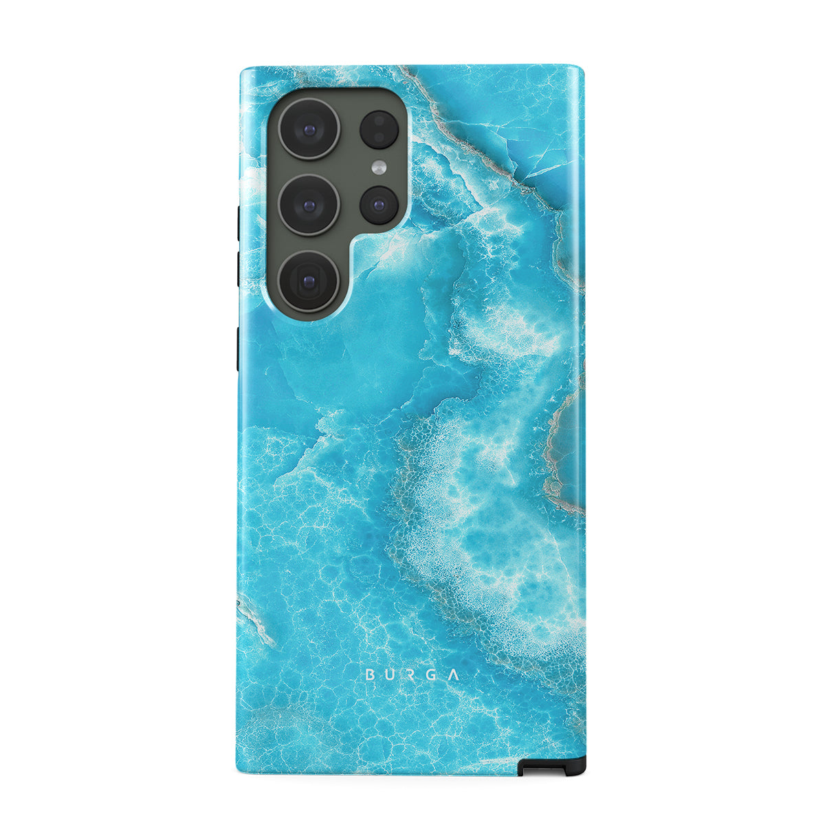 Waves keep crashing down, bringing out lost treasures to the shore. Maybe this one will have the message in the bottle? You may never know what lies in the deeps of the ocean, and our Ocean Waves Samsung Galaxy S23 Ultra phone case brings the mystery in a combination of a stunning blue color and marble pattern. Add protection and color to your phone.