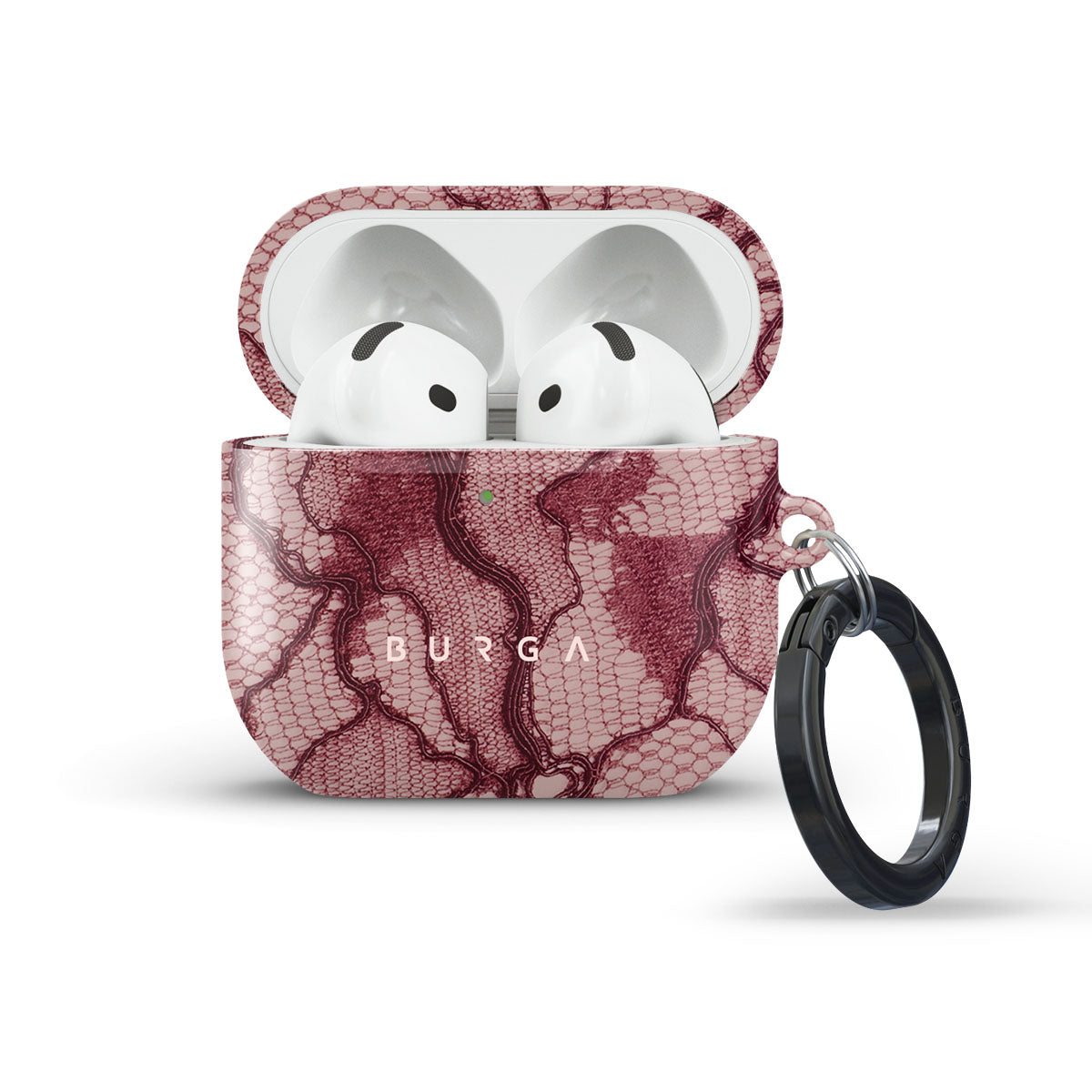 Channel your inner power with our Office Siren AirPods 4 case cover design. A soft rosé backdrop and dark pink lace blend elegance and boldness, perfect for those who make quiet yet undeniable statements with confidence.