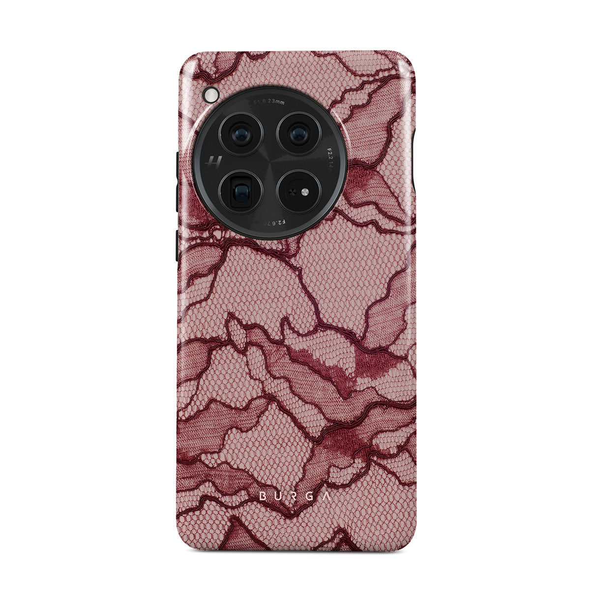 Channel your inner power with our Office Siren OnePlus 12 phone case design. A soft rosé backdrop and dark pink lace blend elegance and boldness, perfect for those who make quiet yet undeniable statements with confidence.