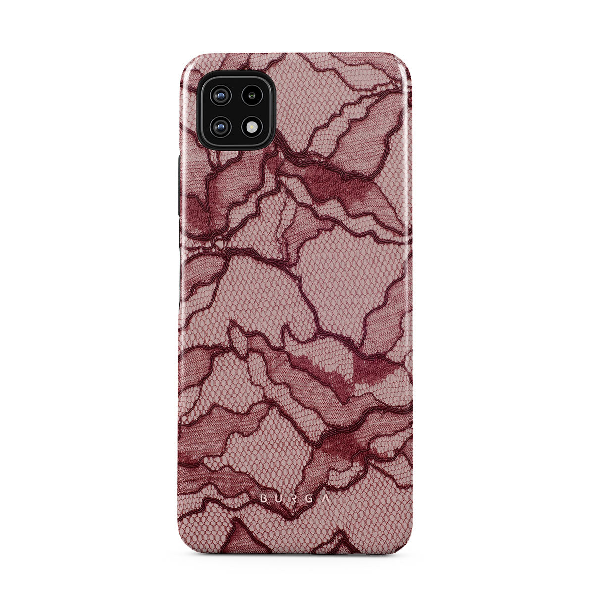 Channel your inner power with our Office Siren Samsung Galaxy A22 5G phone case design. A soft rosé backdrop and dark pink lace blend elegance and boldness, perfect for those who make quiet yet undeniable statements with confidence.