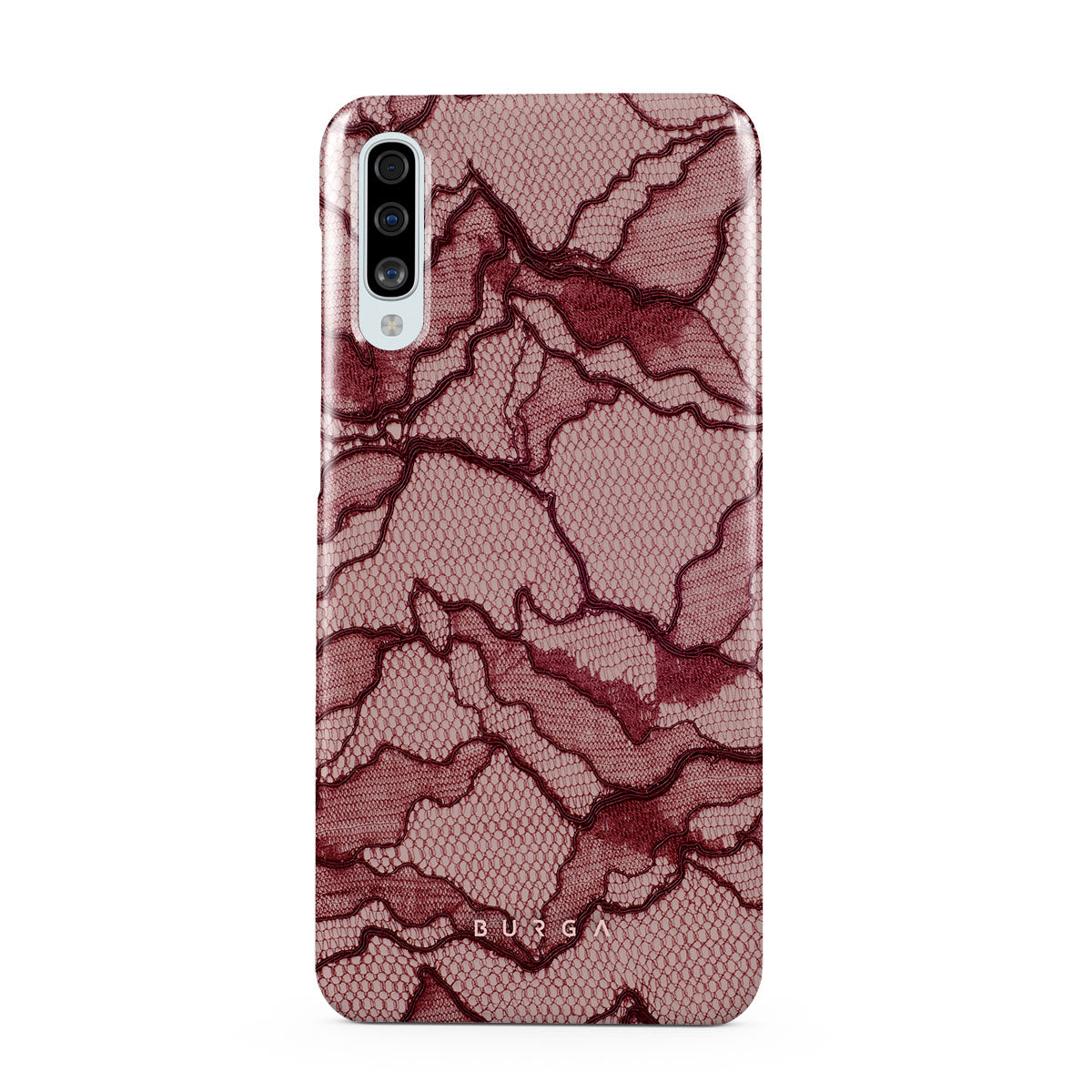 Channel your inner power with our Office Siren Samsung Galaxy A50 phone case design. A soft rosé backdrop and dark pink lace blend elegance and boldness, perfect for those who make quiet yet undeniable statements with confidence.
