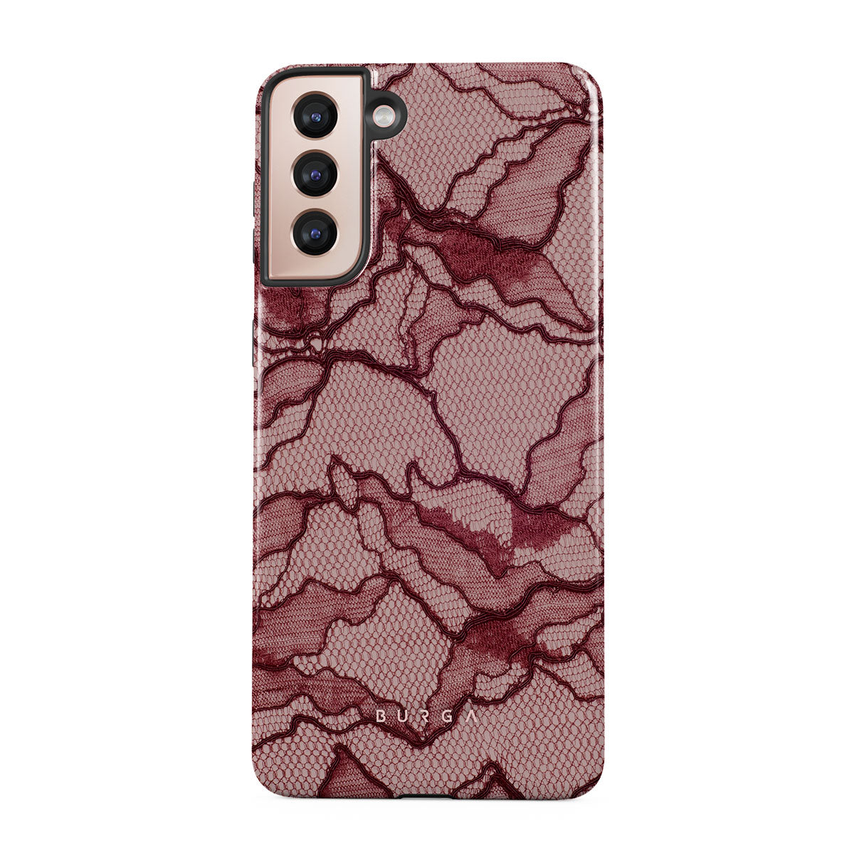 Channel your inner power with our Office Siren Samsung Galaxy S21 Plus phone case design. A soft rosé backdrop and dark pink lace blend elegance and boldness, perfect for those who make quiet yet undeniable statements with confidence.