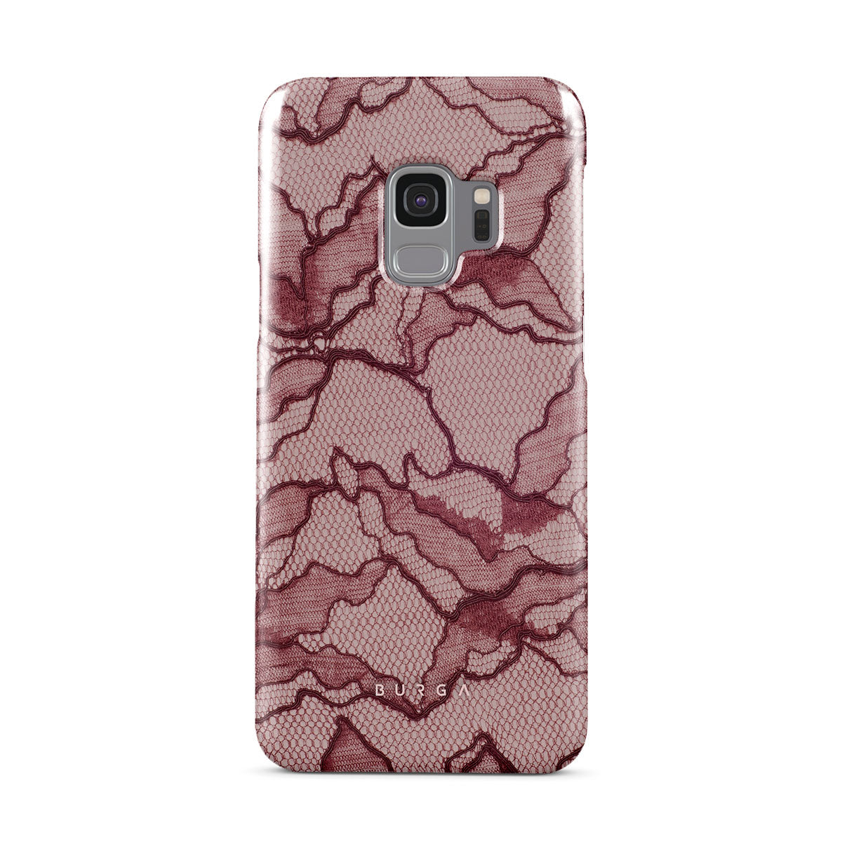 Channel your inner power with our Office Siren Samsung Galaxy S9 phone case design. A soft rosé backdrop and dark pink lace blend elegance and boldness, perfect for those who make quiet yet undeniable statements with confidence.