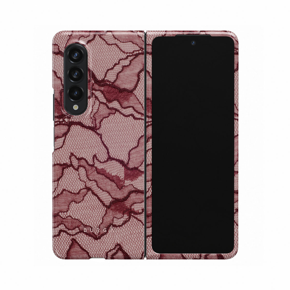 Channel your inner power with our Office Siren Samsung Galaxy Z Fold 3 phone case design. A soft rosé backdrop and dark pink lace blend elegance and boldness, perfect for those who make quiet yet undeniable statements with confidence.