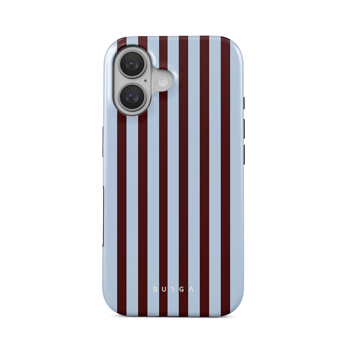 Brown, blue, and emotionally unavailable. This striped iPhone 16 phone case design says, “I turned off my Slack notifications and found inner peace.” Or at least a cute aesthetic.