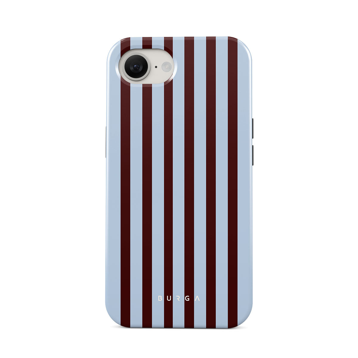 Brown, blue, and emotionally unavailable. This striped iPhone 16e phone case design says, “I turned off my Slack notifications and found inner peace.” Or at least a cute aesthetic.