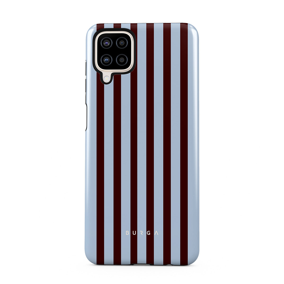 Brown, blue, and emotionally unavailable. This striped Samsung Galaxy A12 4G phone case design says, “I turned off my Slack notifications and found inner peace.” Or at least a cute aesthetic.