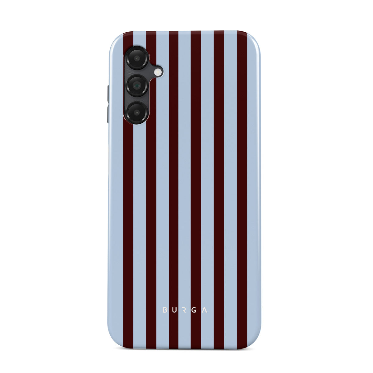 Brown, blue, and emotionally unavailable. This striped Samsung Galaxy A14 5G phone case design says, “I turned off my Slack notifications and found inner peace.” Or at least a cute aesthetic.