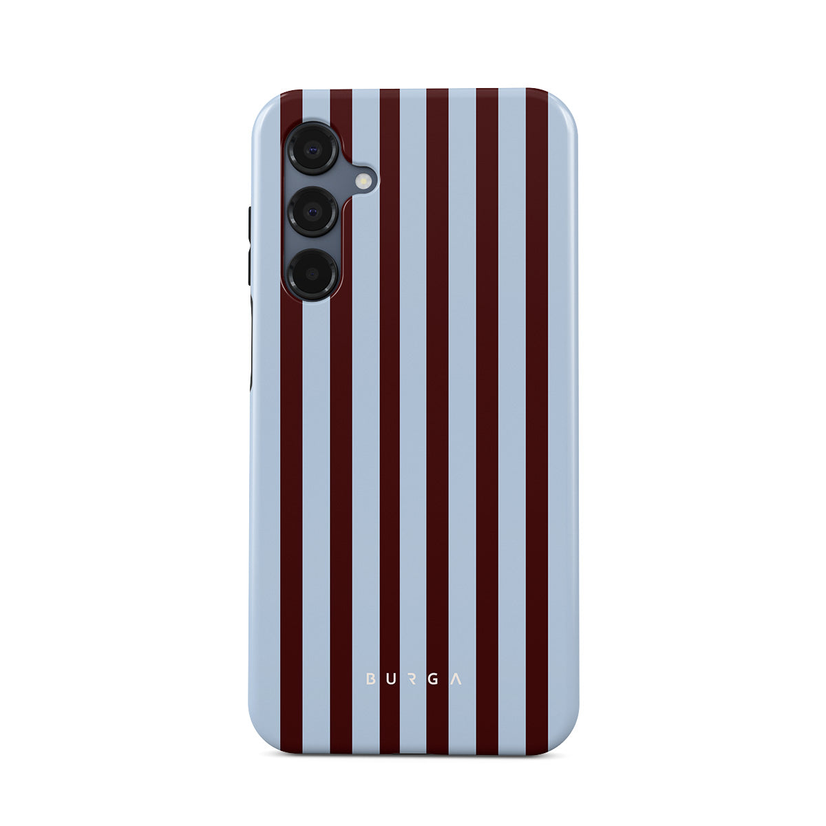Brown, blue, and emotionally unavailable. This striped Samsung Galaxy A16 phone case design says, “I turned off my Slack notifications and found inner peace.” Or at least a cute aesthetic.