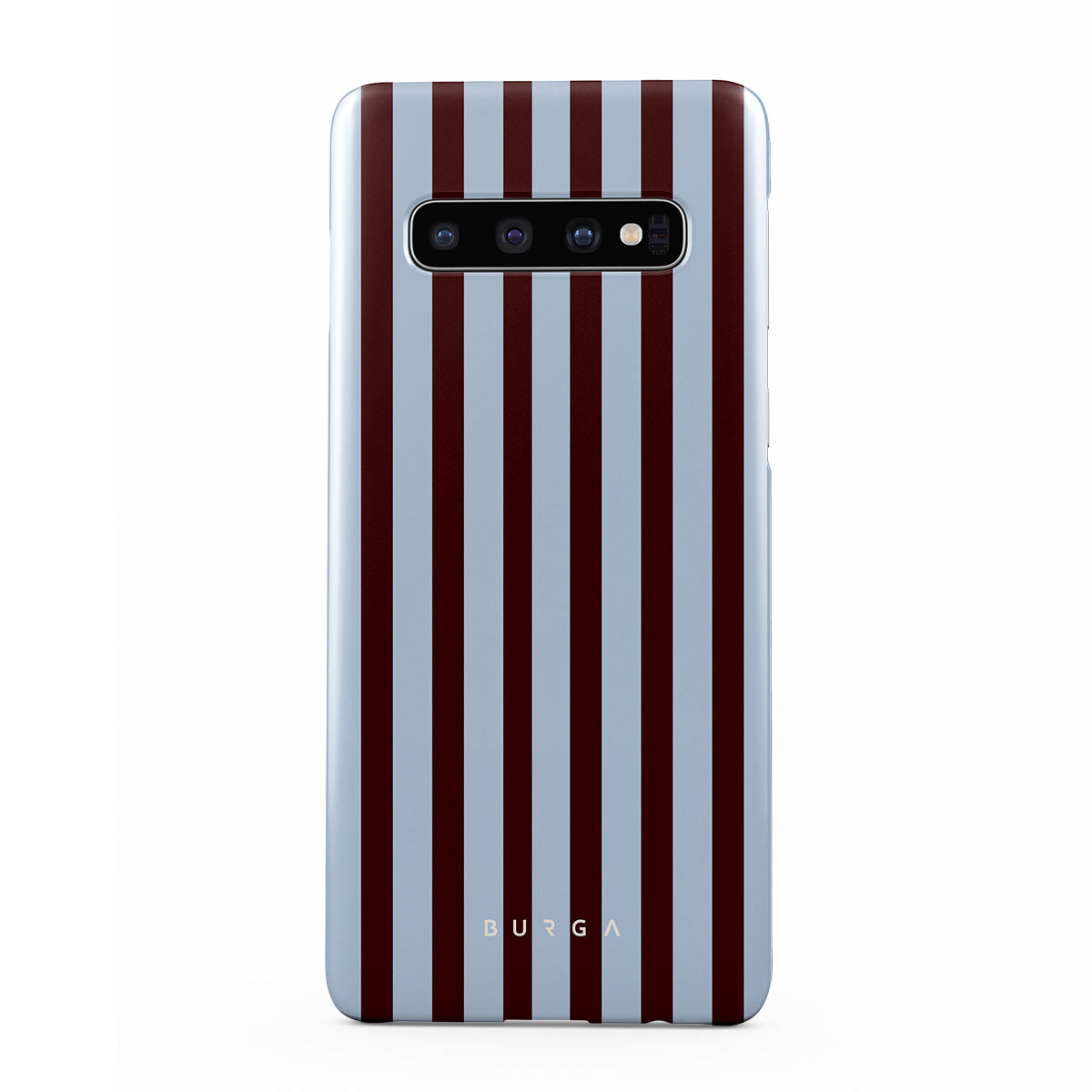 Brown, blue, and emotionally unavailable. This striped Samsung Galaxy S10 Plus phone case design says, “I turned off my Slack notifications and found inner peace.” Or at least a cute aesthetic.