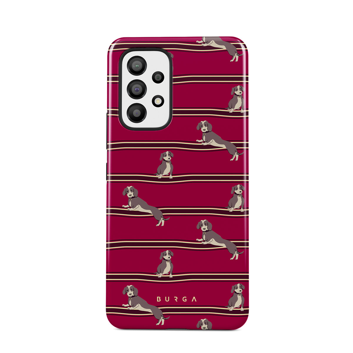 This Samsung Galaxy A53 phone case design is what it feels like to wait for your promotion while your boss reposts hustle quotes on LinkedIn. And yes, these doggos are judging your life choices.