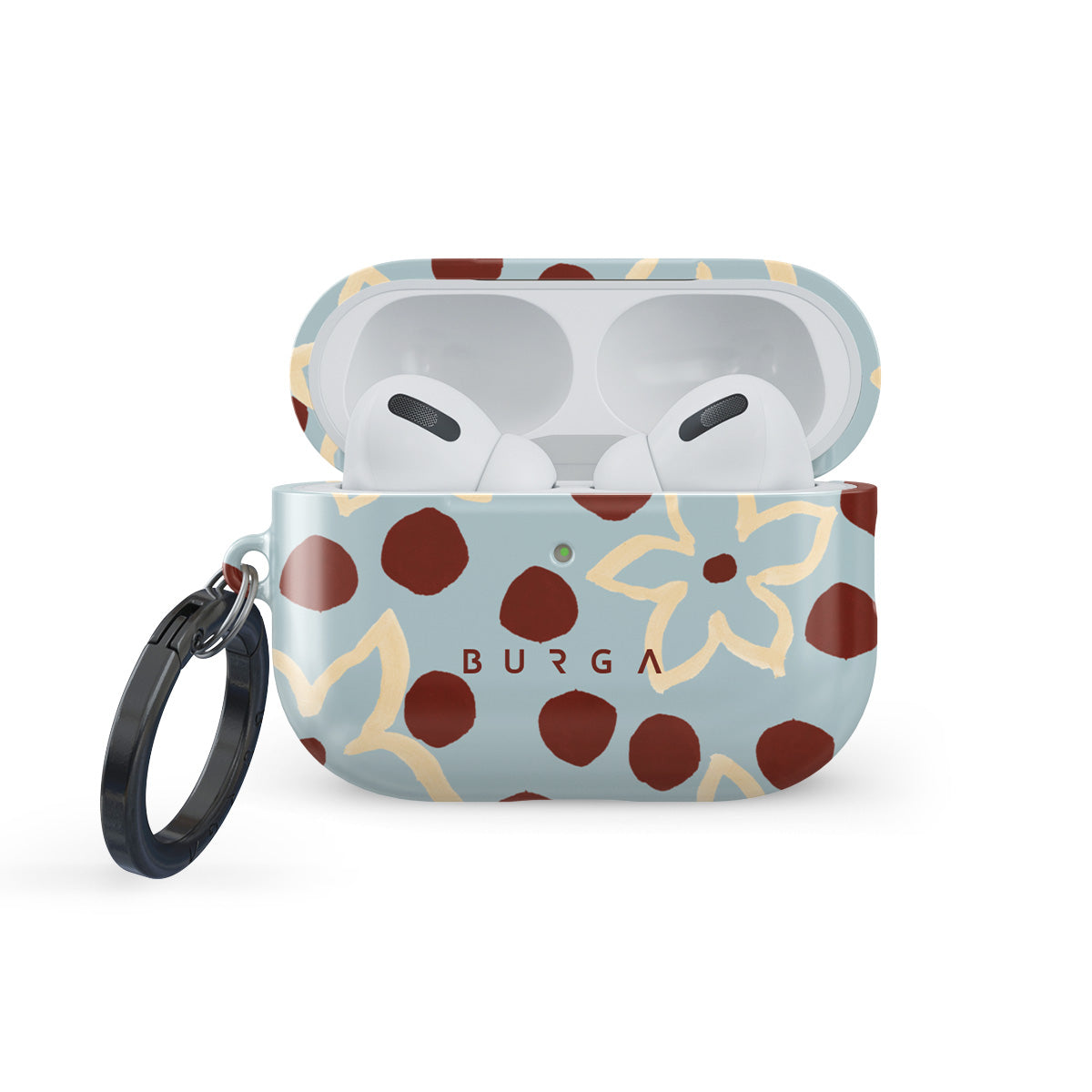 The Frutaria AirPods Pro 3 design: retro surf motel wallpaper meets vintage ceramics. The soft florals, earthy dots, and cool-toned palette give major “forgotten seaside town in the ‘70s” energy.