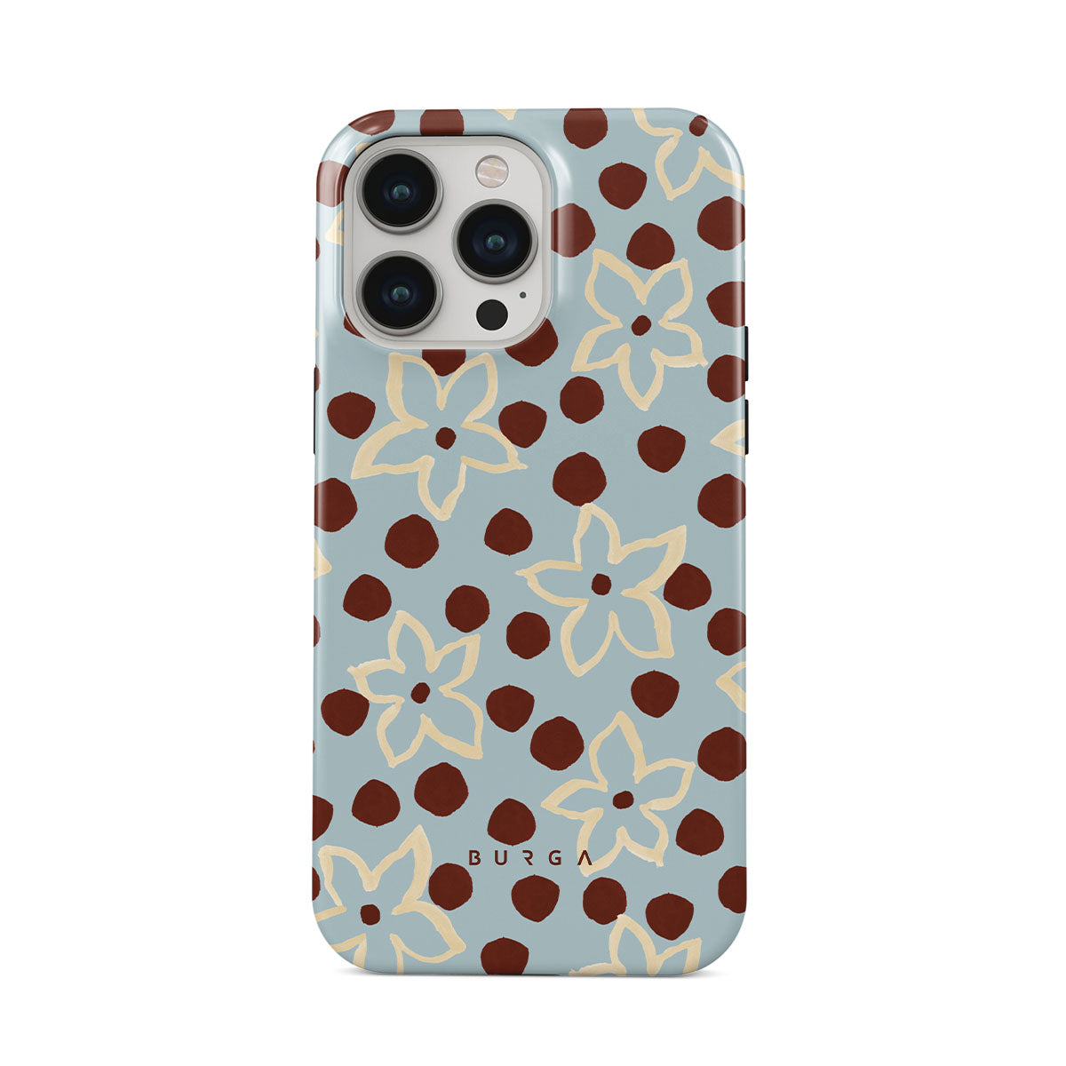 The Frutaria iPhone 13 Pro Max phone case design design: retro surf motel wallpaper meets vintage ceramics. The soft florals, earthy dots, and cool-toned palette give major “forgotten seaside town in the ‘70s” energy.