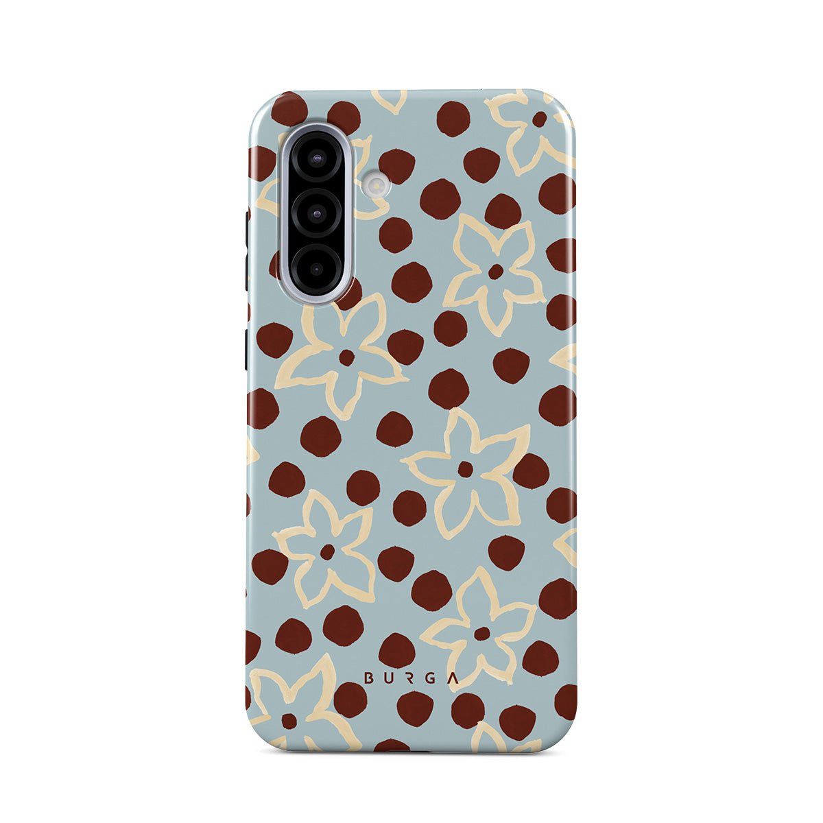The Frutaria Samsung Galaxy A36 5G phone case design design: retro surf motel wallpaper meets vintage ceramics. The soft florals, earthy dots, and cool-toned palette give major “forgotten seaside town in the ‘70s” energy.