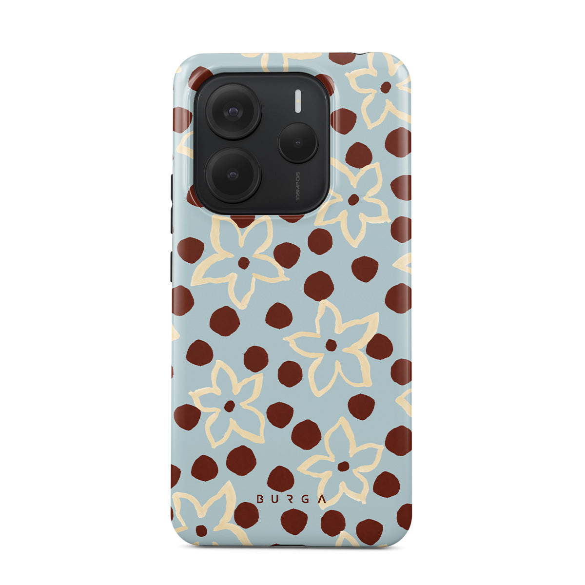 The Frutaria Xiaomi Redmi Note 14 5G phone case design design: retro surf motel wallpaper meets vintage ceramics. The soft florals, earthy dots, and cool-toned palette give major “forgotten seaside town in the ‘70s” energy.