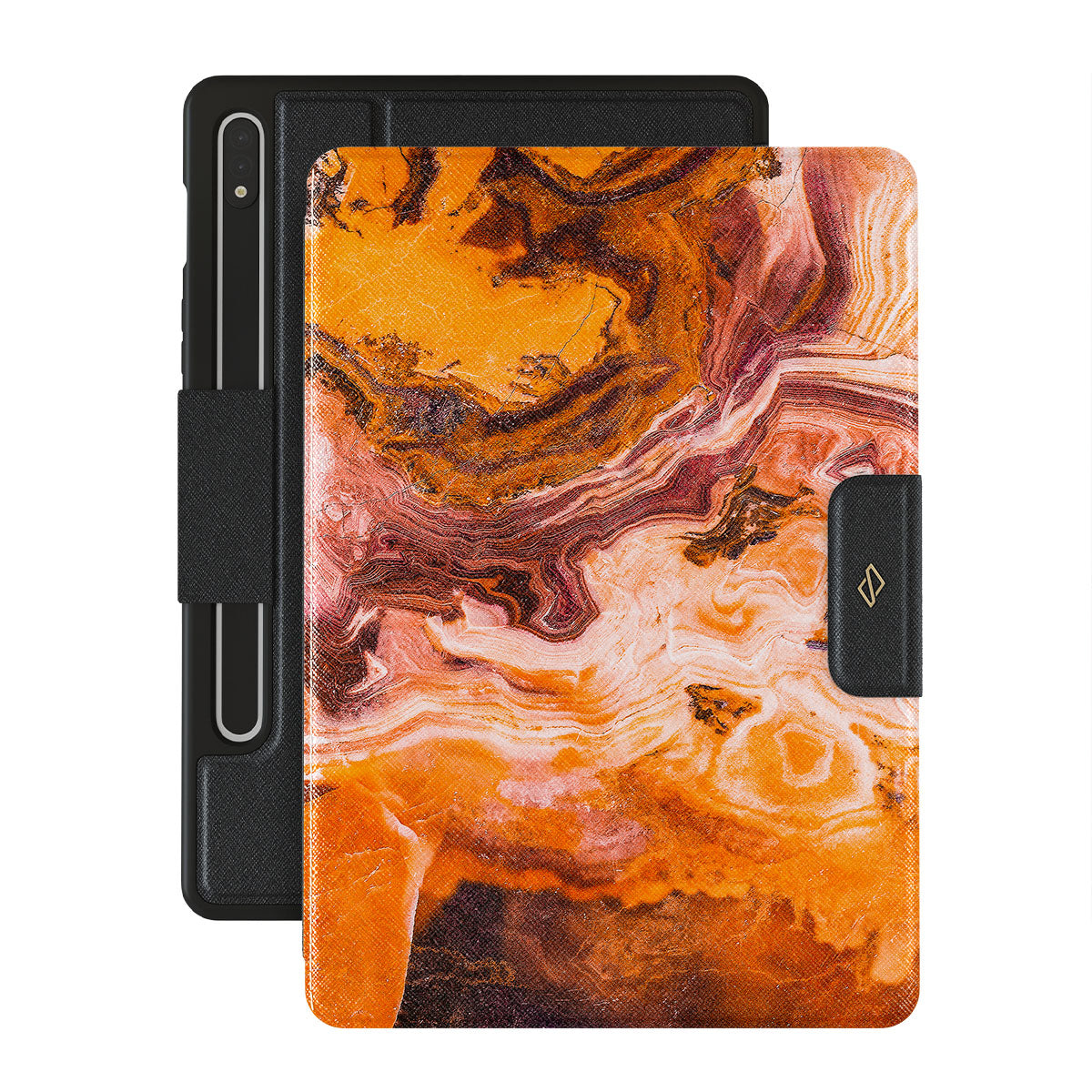 Sugar, spice, and everything nice. Add brightness to your everyday moments with a pretty orange marble Samsung Galaxy Tab S9+ folio case. Your style deserves a pop of color, and a Pumpkin Spice Galaxy Tab case cover is the best way to add it without any hassle.