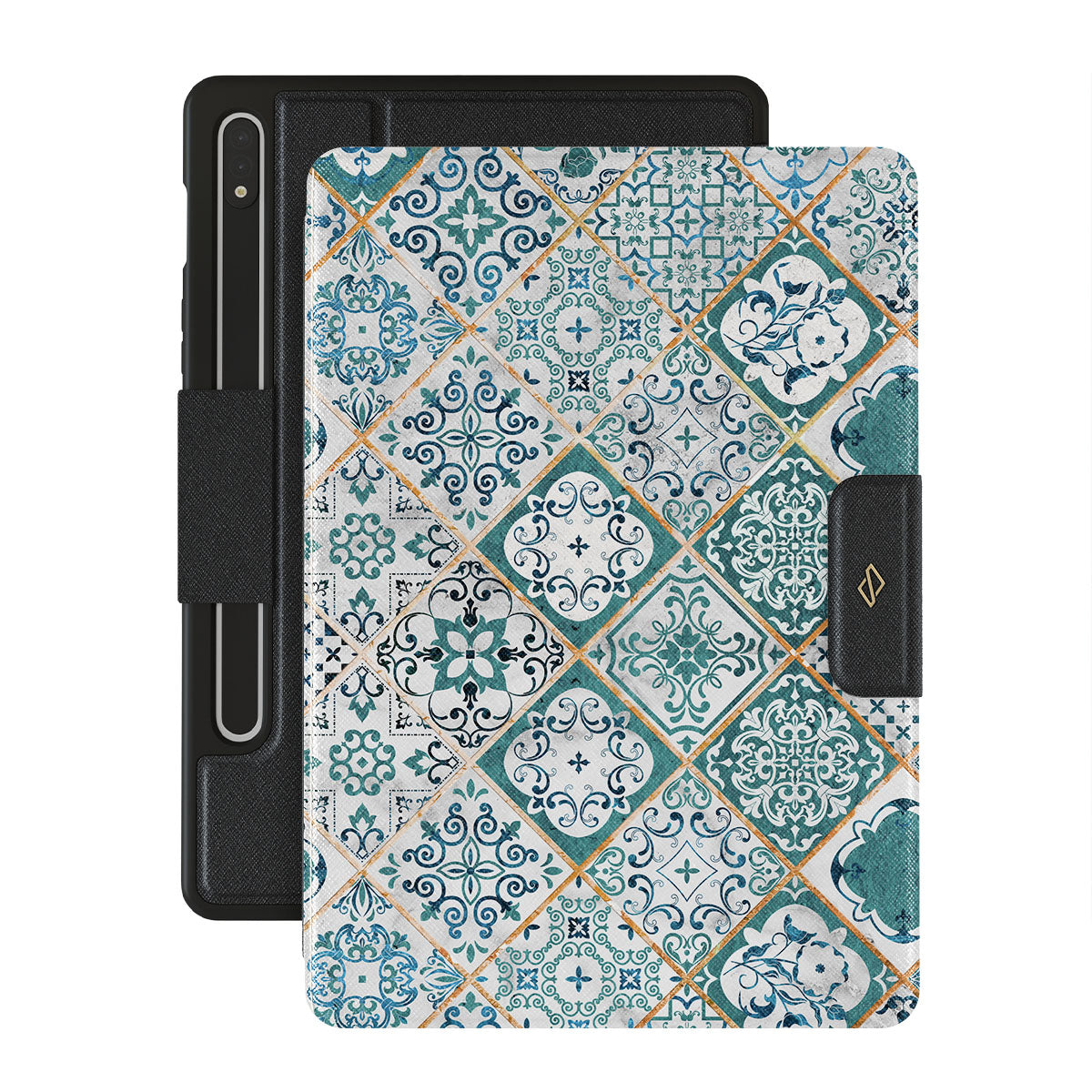 Tropical Oasis Samsung Galaxy Tab S9+ folio case is inspired by the timeless Moroccan ornaments. Such patterns can be seen all over the fashion industry and always add a touch of exotic. With this popular ornament, you can have an Galaxy Tab case cover that is both protective and trendy.