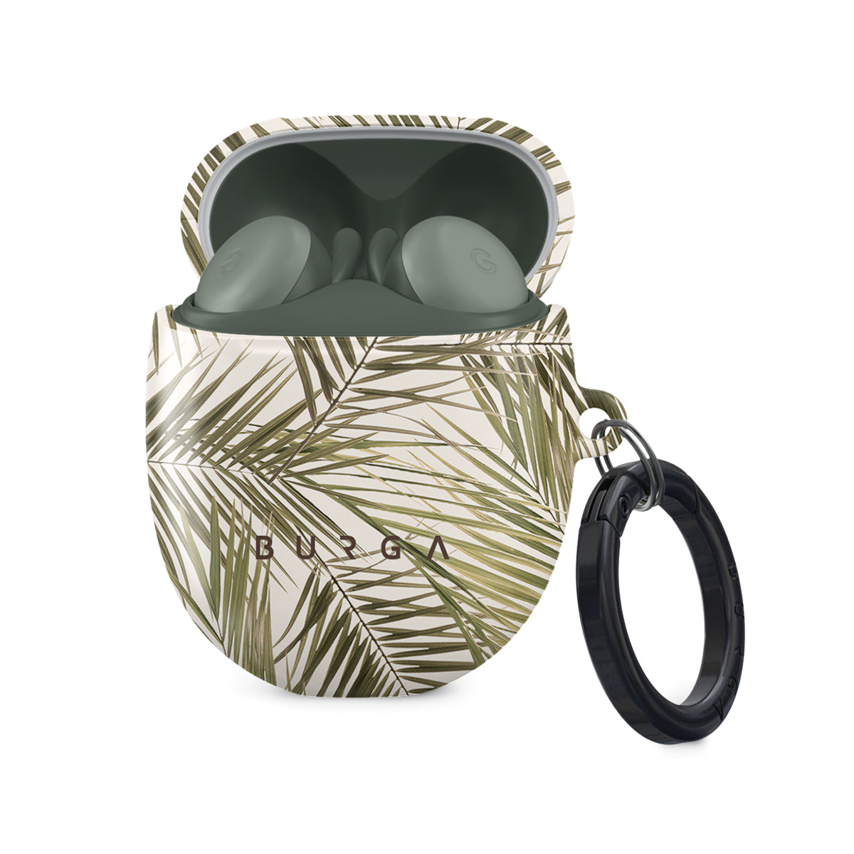 Make a statement with our unique Google Pixel Buds A case cover with soft palm leaves design and create a perfect accessory out of your beloved tech. Now you can make your Google Pixel Buds A to match your style while also keeping them safe. Our case fits perfectly snug around Google Pixel Buds A . “Like a glove!” one might say. And it won’t disrupt the wireless charging capabilities of the newer model. There’s even an LED light indicator to prove it (don’t worry, wired charging still works, too). When fitted, the BURGA case will protect the delicate Google Pixel Buds A case beneath it from scratches, bumps, and drops while remaining scratch-free itself. Our signature design pattern prints are High Quality, and will never peel or fade away- thanks to our unique printing technology. And finally, a handy carabiner is there to make your life easier and more convenient: just snap it around your keys or belt loop and tackle the day head-on. Your music is right there by your side when you need it.
