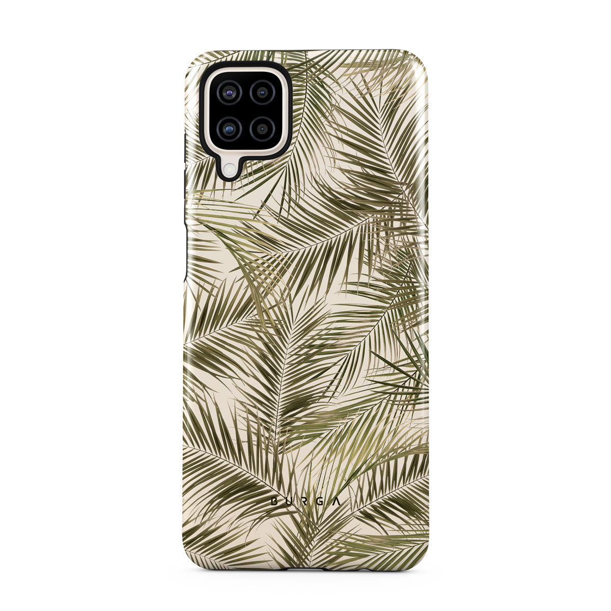 Some find happiness in the endless possibilities, and others find joy in the moments of relief. Can it be that you will find your happy place surrounded by palm leaves? Try our unique Samsung Galaxy A12 4G phone case design with bright palm leaves and add a statement to your style.