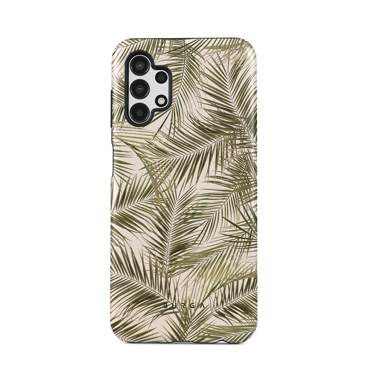 Some find happiness in the endless possibilities, and others find joy in the moments of relief. Can it be that you will find your happy place surrounded by palm leaves? Try our unique Samsung Galaxy A13 4G phone case design with bright palm leaves and add a statement to your style.
