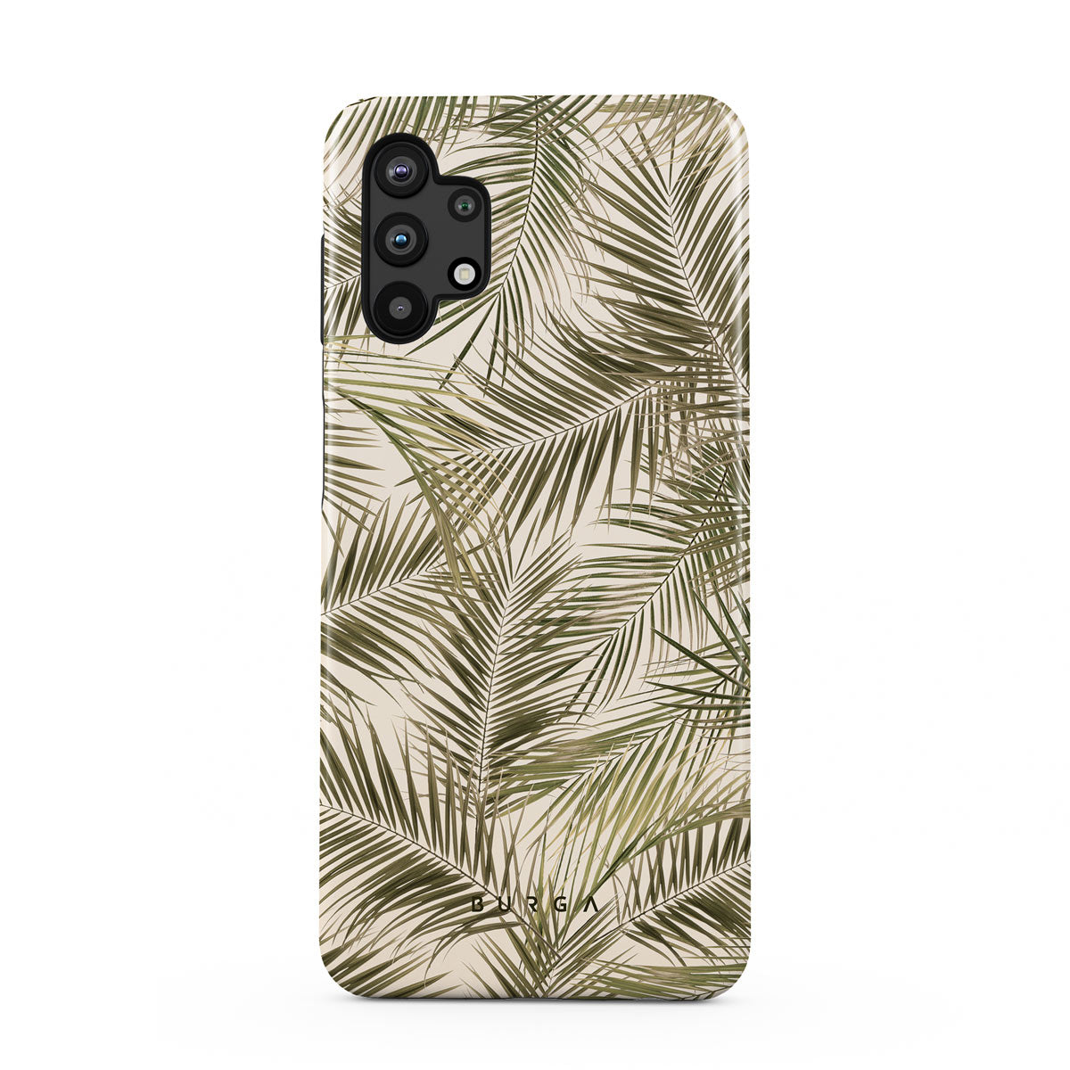Some find happiness in the endless possibilities, and others find joy in the moments of relief. Can it be that you will find your happy place surrounded by palm leaves? Try our unique Samsung Galaxy A32 5G phone case design with bright palm leaves and add a statement to your style.
