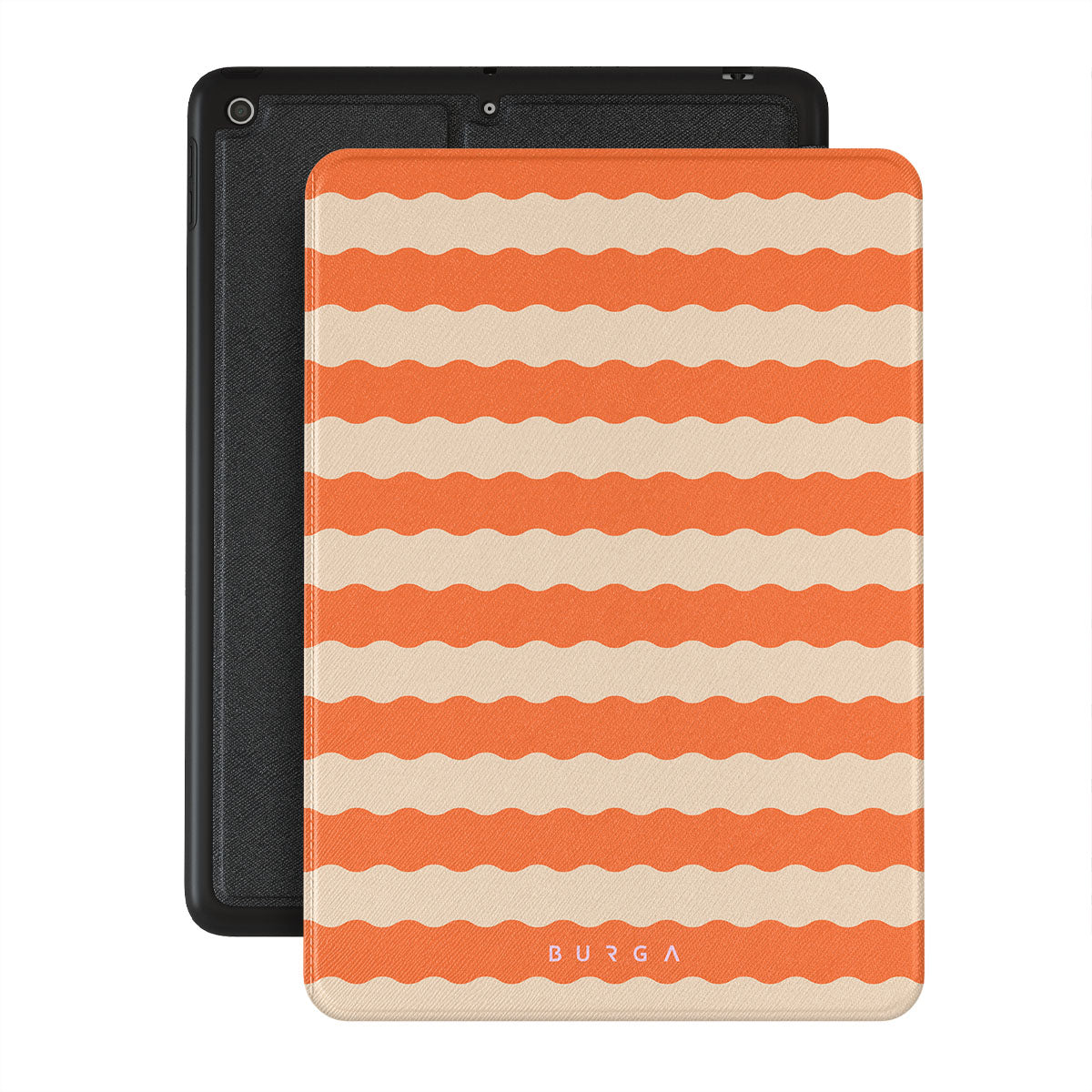 Unleash the tropical heat with the our Papaya design—a sizzling iPad 10.2 (9th/8th/7th Gen) folio case that electrifies with fiery, wavy stripes of juicy papaya orange and smooth, creamy beige. Perfect for trendsetters craving a daring, sun-soaked style.