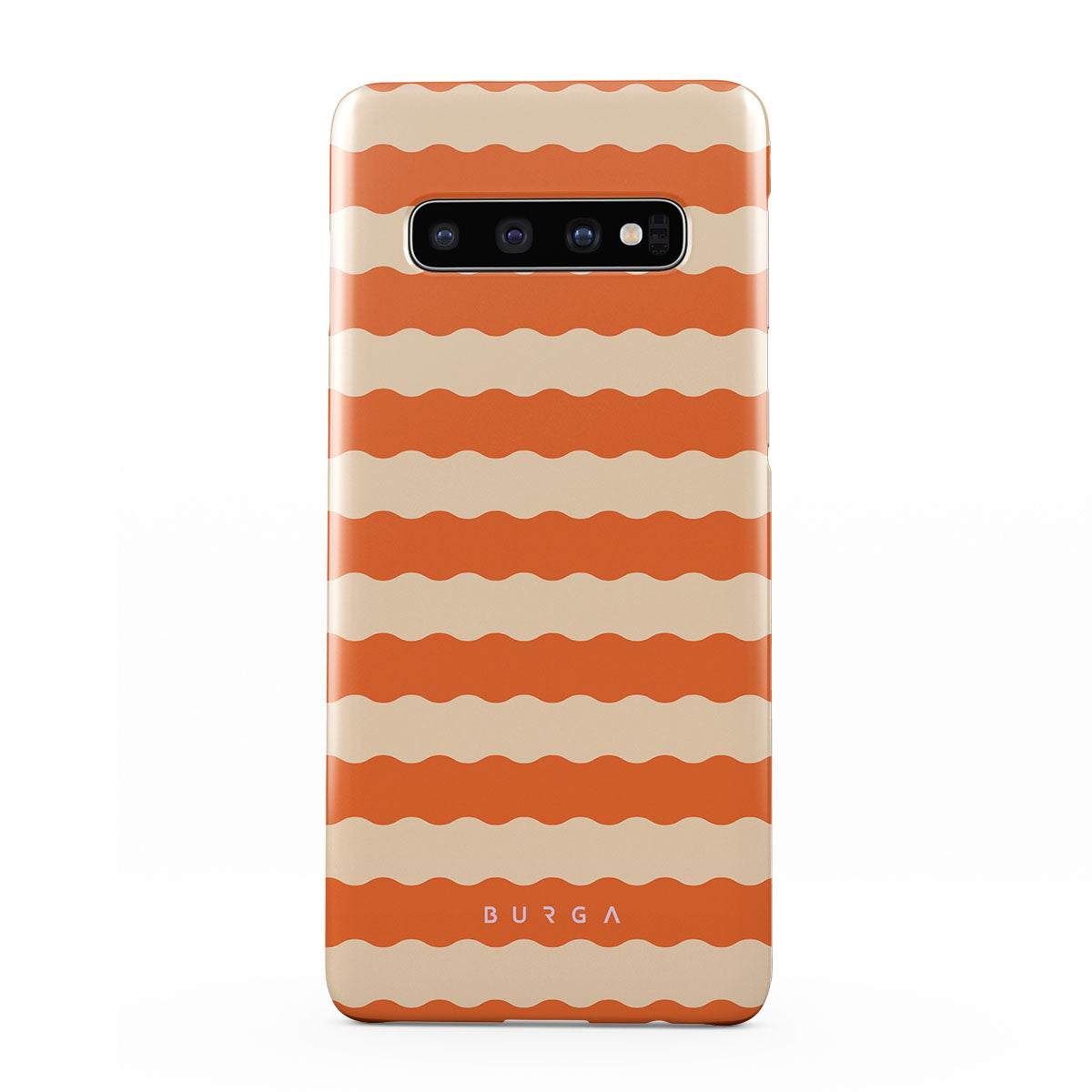 Unleash the tropical heat with the our Papaya design—a sizzling Samsung Galaxy S10 Plus phone case that electrifies with fiery, wavy stripes of juicy papaya orange and smooth, creamy beige. Perfect for trendsetters craving a daring, sun-soaked style.