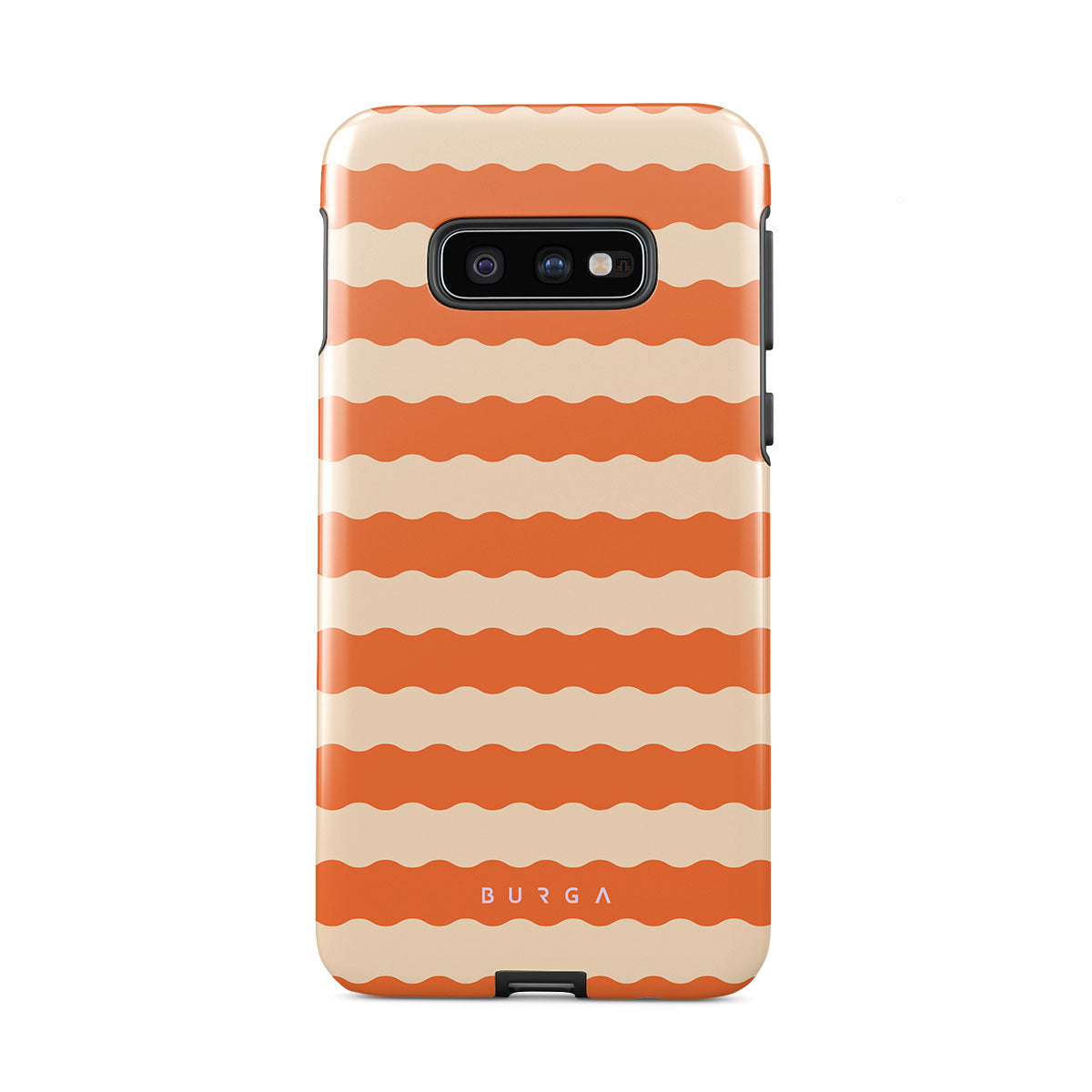 Unleash the tropical heat with the our Papaya design—a sizzling Samsung Galaxy S10E phone case that electrifies with fiery, wavy stripes of juicy papaya orange and smooth, creamy beige. Perfect for trendsetters craving a daring, sun-soaked style.