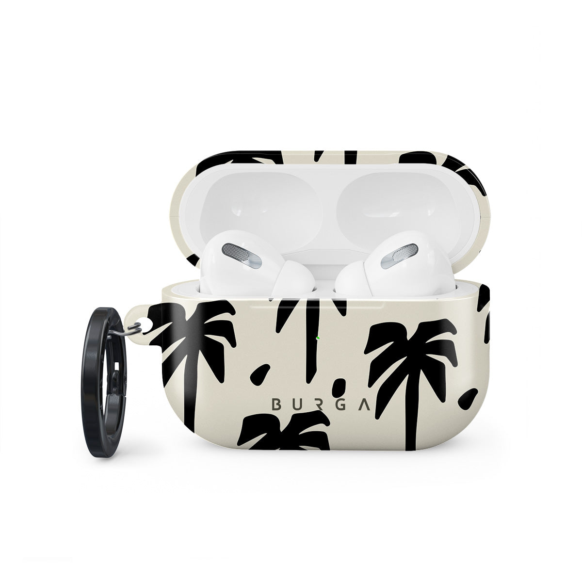 A peaceful haven right at your fingertips. The design contrasts black palm silhouettes against a calming light backdrop. Our Paraíso Apple Airpods Pro 2 case cover is your passport to an everlasting tropical escape.