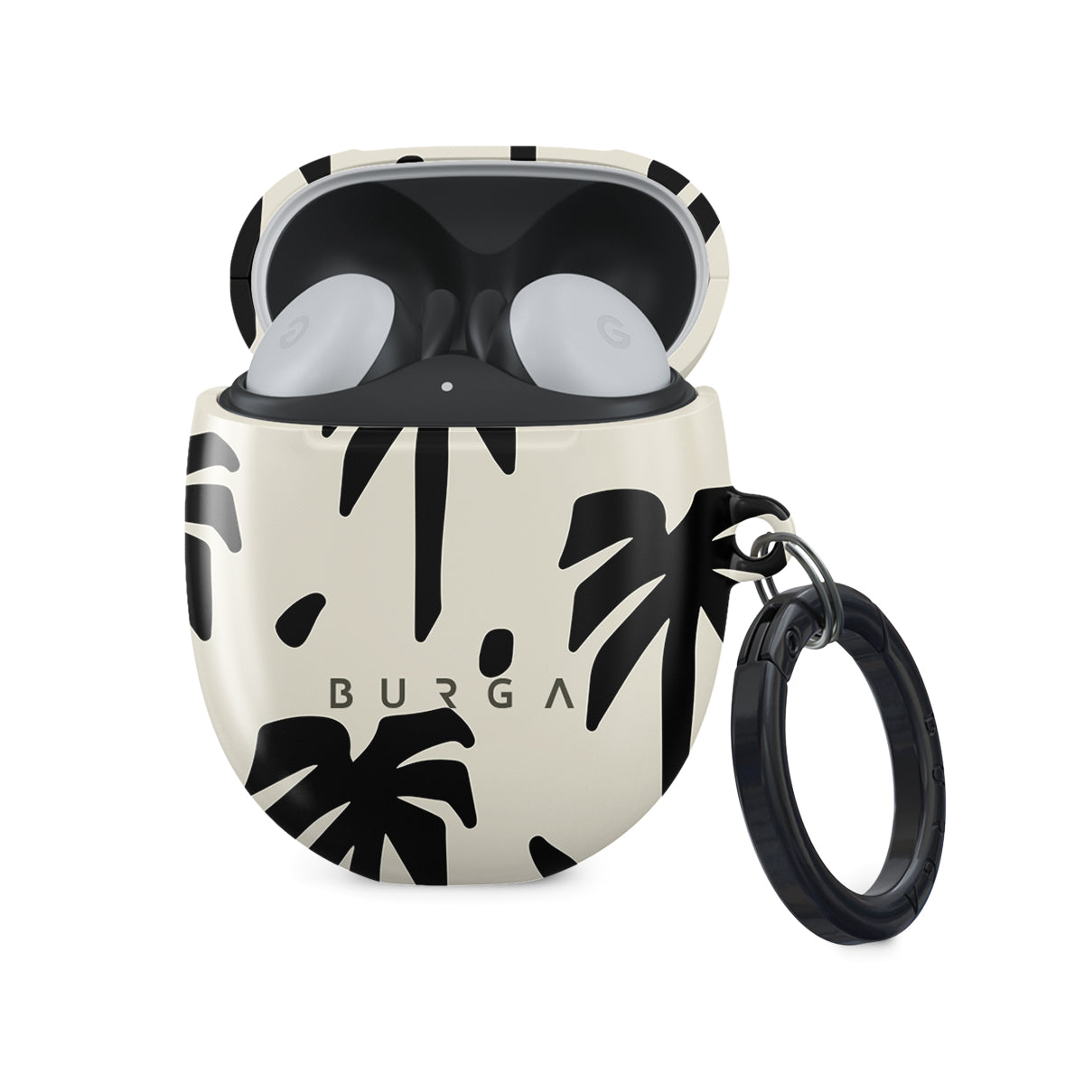 A peaceful haven right at your fingertips. The design contrasts black palm silhouettes against a calming light backdrop. Our Paraíso Google Pixel Buds 2 case cover is your passport to an everlasting tropical escape.