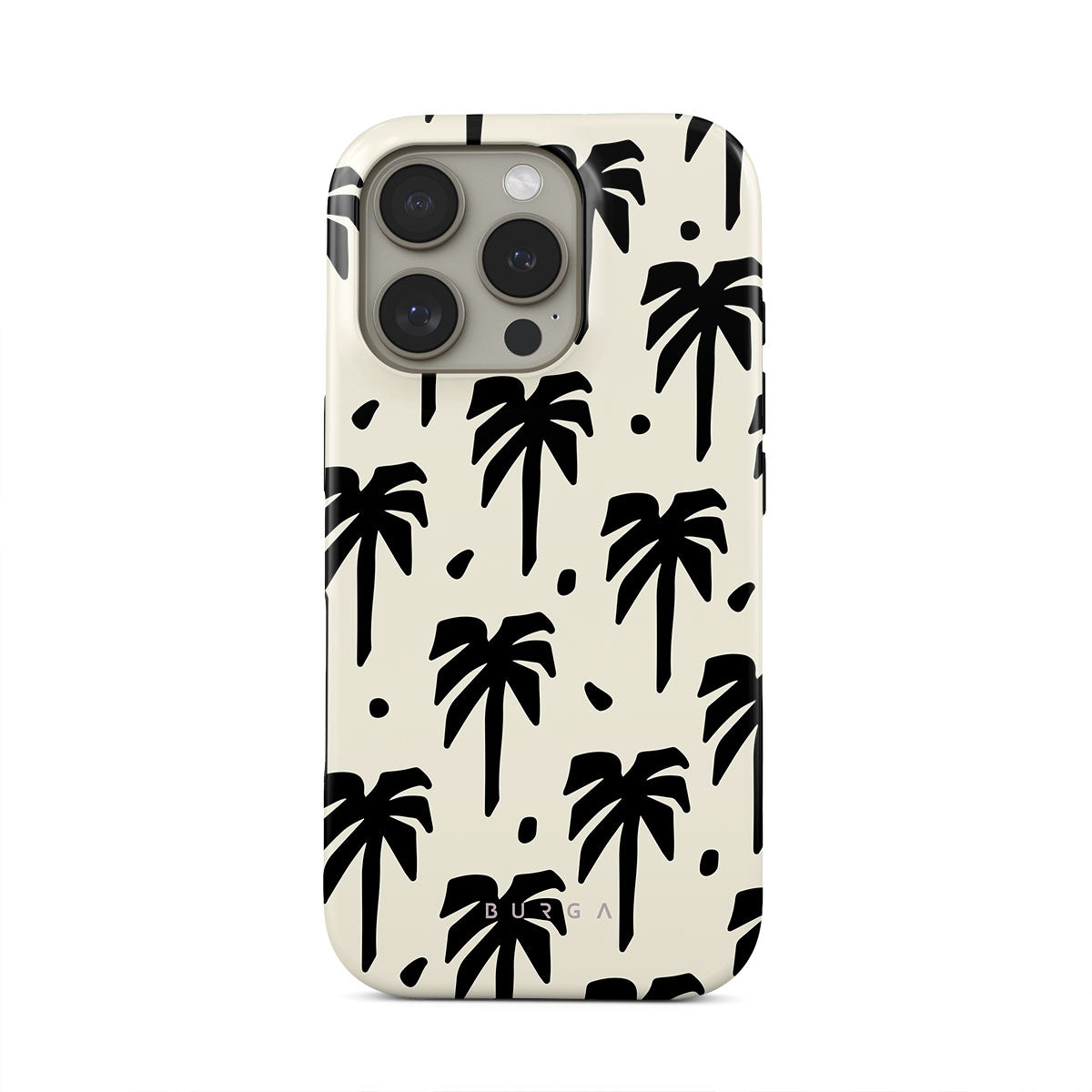 A peaceful haven right at your fingertips. The design contrasts black palm silhouettes against a calming light backdrop. Our Paraíso iPhone 16 Pro phone case is your passport to an everlasting tropical escape.
