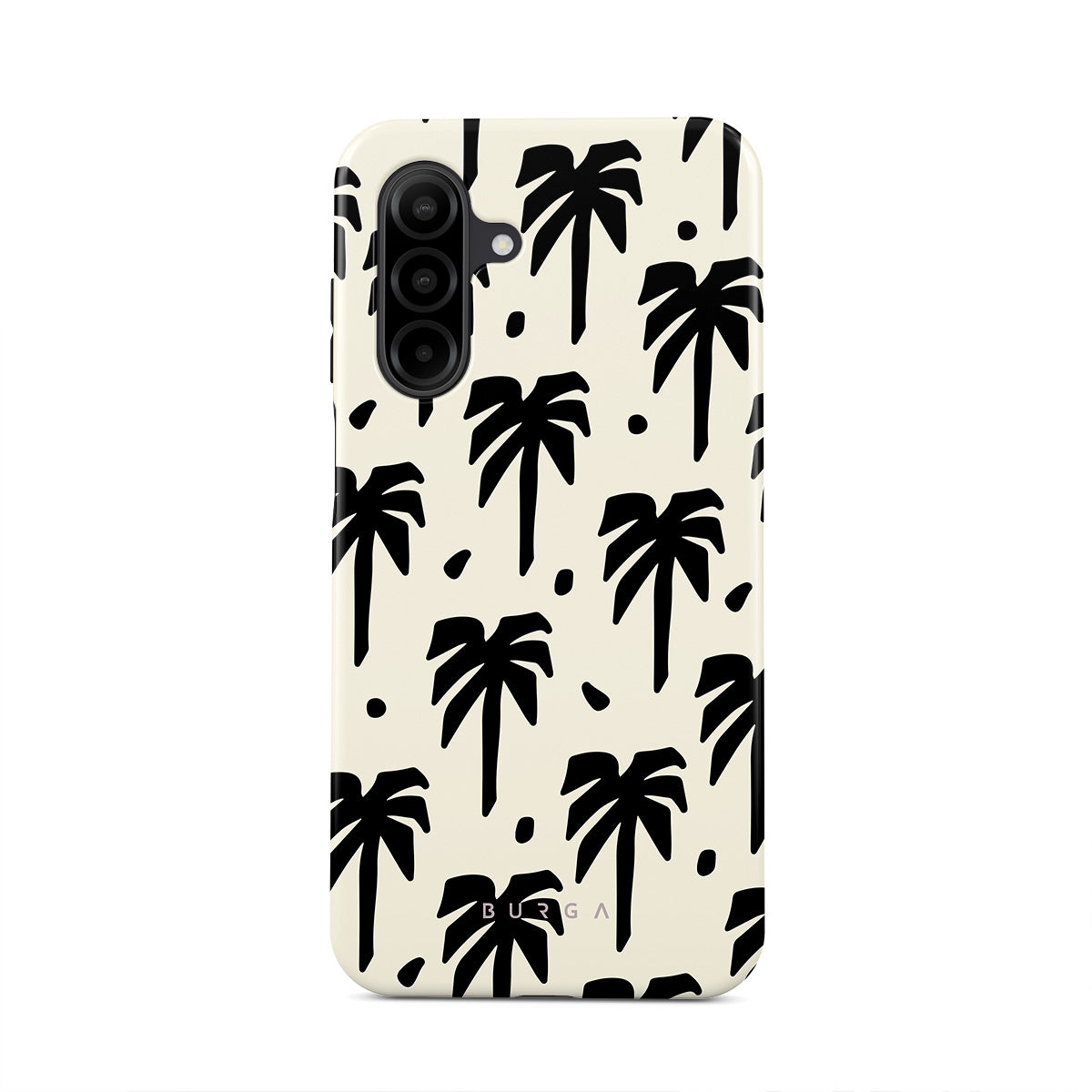 A peaceful haven right at your fingertips. The design contrasts black palm silhouettes against a calming light backdrop. Our Paraíso Samsung Galaxy A26 5G phone case is your passport to an everlasting tropical escape.
