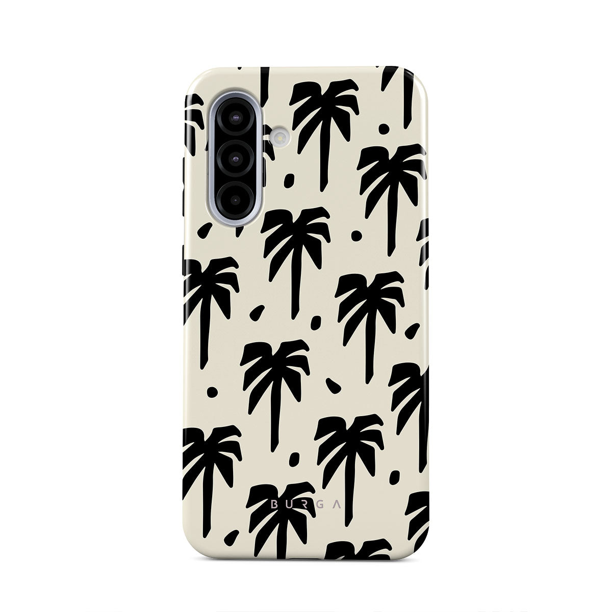 A peaceful haven right at your fingertips. The design contrasts black palm silhouettes against a calming light backdrop. Our Paraíso Samsung Galaxy A36 5G phone case is your passport to an everlasting tropical escape.