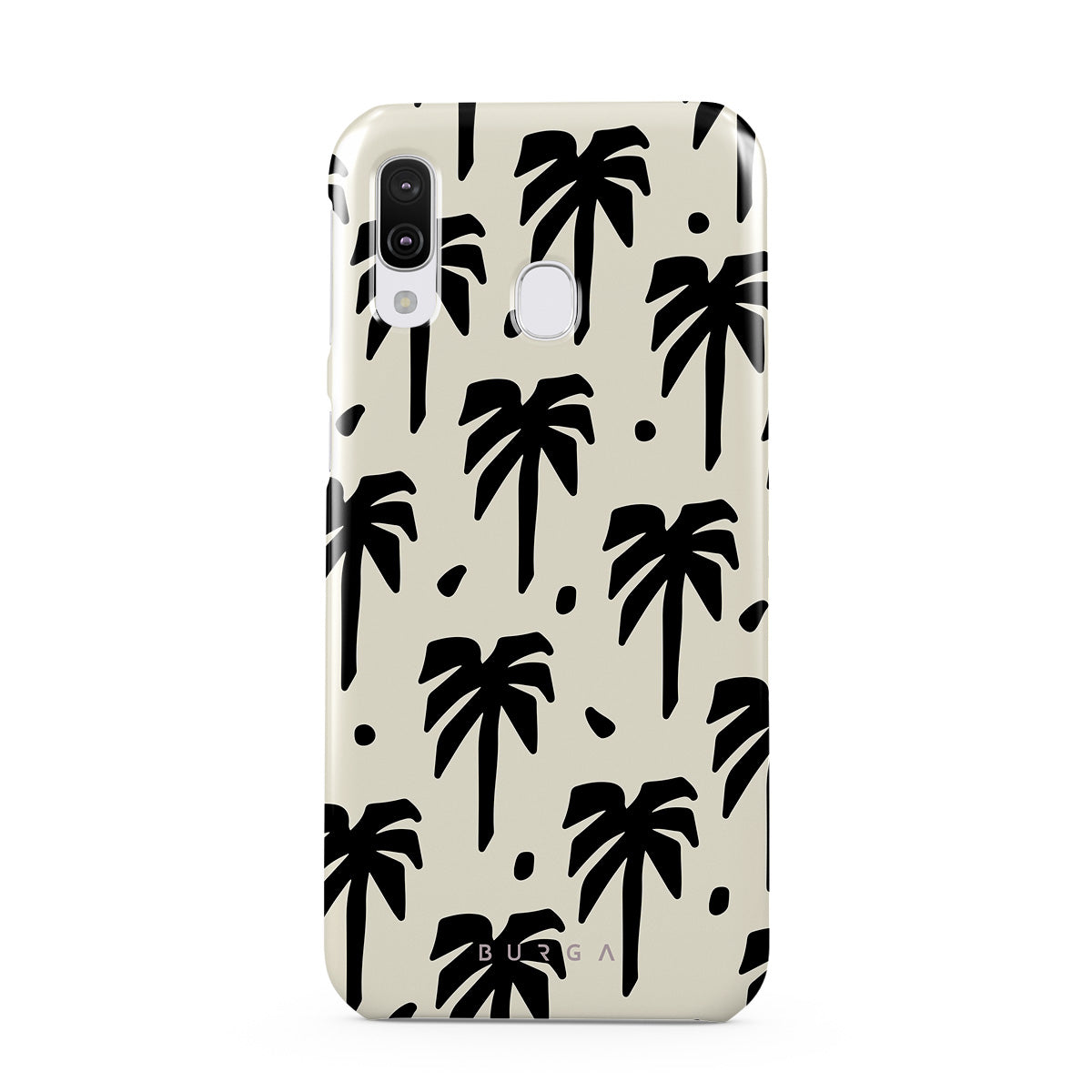 A peaceful haven right at your fingertips. The design contrasts black palm silhouettes against a calming light backdrop. Our Paraíso Samsung Galaxy A40 phone case is your passport to an everlasting tropical escape.