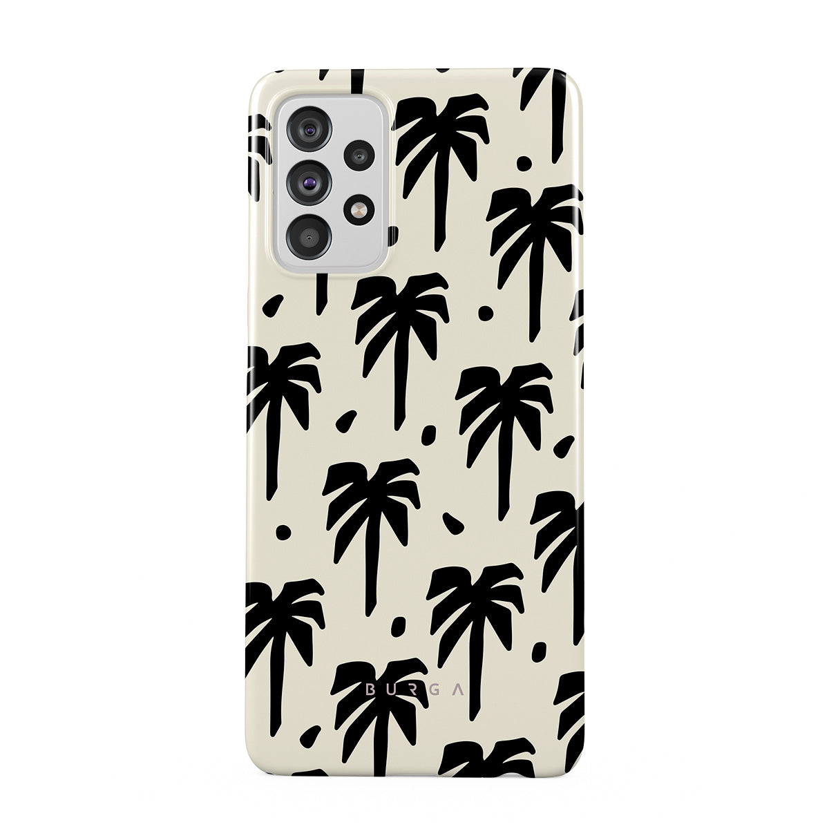A peaceful haven right at your fingertips. The design contrasts black palm silhouettes against a calming light backdrop. Our Paraíso Samsung Galaxy A72 4G / 5G phone case is your passport to an everlasting tropical escape.