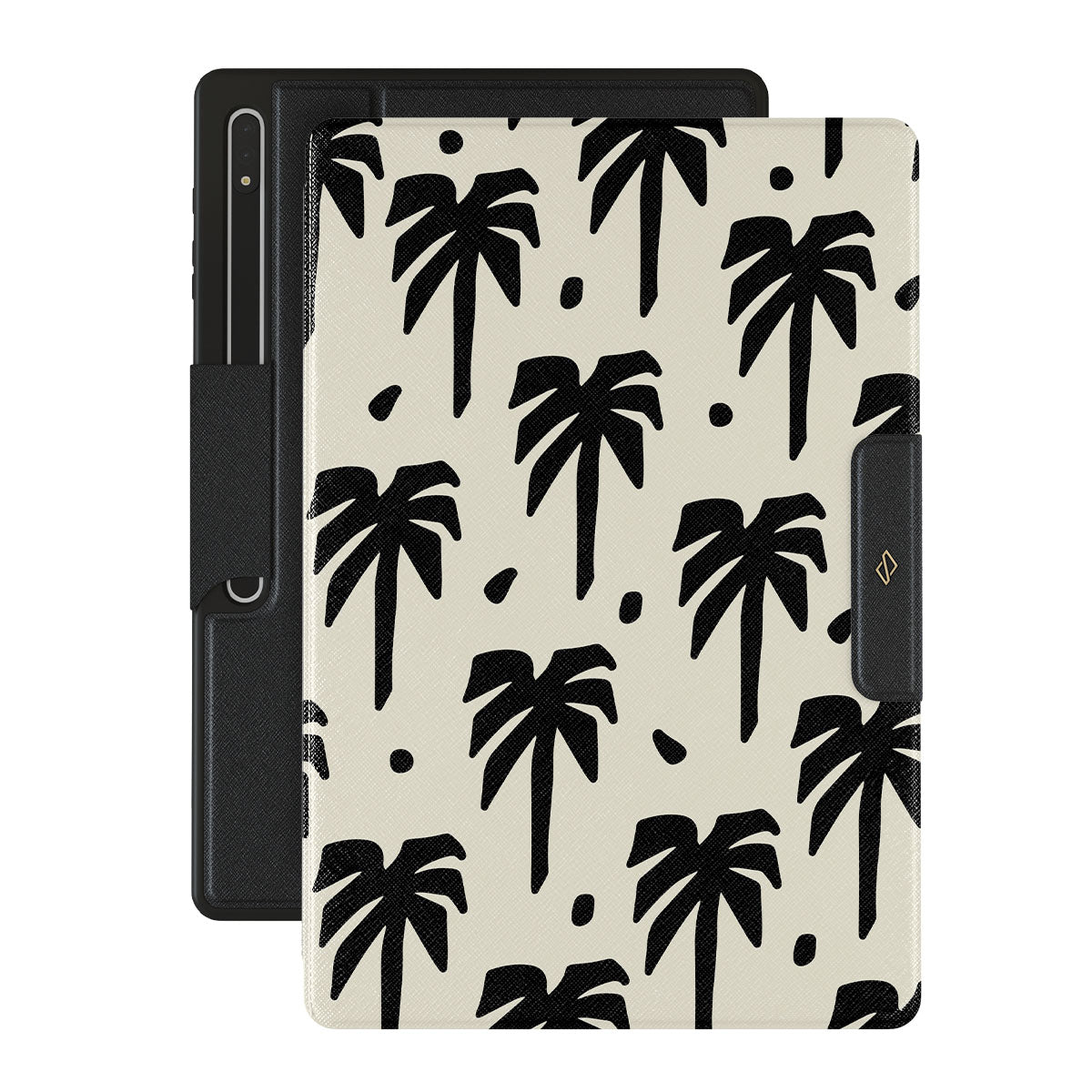 A peaceful haven right at your fingertips. The design contrasts black palm silhouettes against a calming light backdrop. Our Paraíso Samsung Galaxy Tab S8 Ultra folio case is your passport to an everlasting tropical escape.