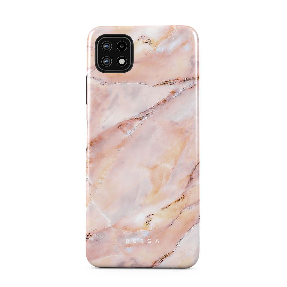 Morning Sunshine Samsung Galaxy A22 5G phone case features a timeless pastel marble design, inspired by the beauty of a sunrise. Soft hues of pink and orange will add warmth to your style. Keep your phone protected with sunshine in your pocket.
