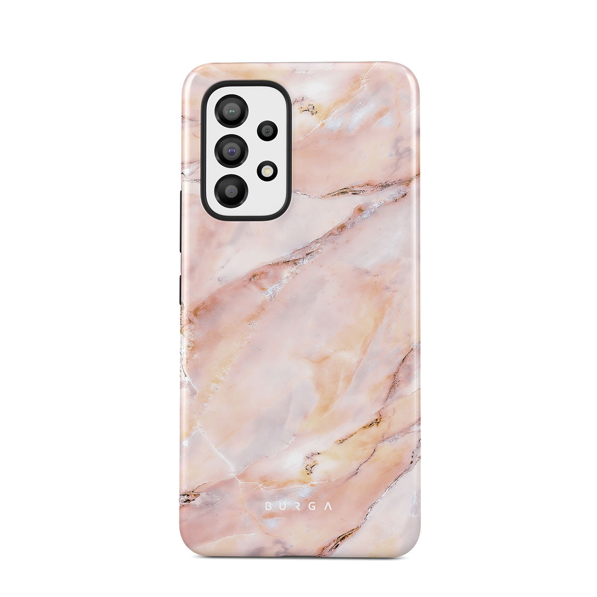 Morning Sunshine Samsung Galaxy A33 phone case features a timeless pastel marble design, inspired by the beauty of a sunrise. Soft hues of pink and orange will add warmth to your style. Keep your phone protected with sunshine in your pocket.