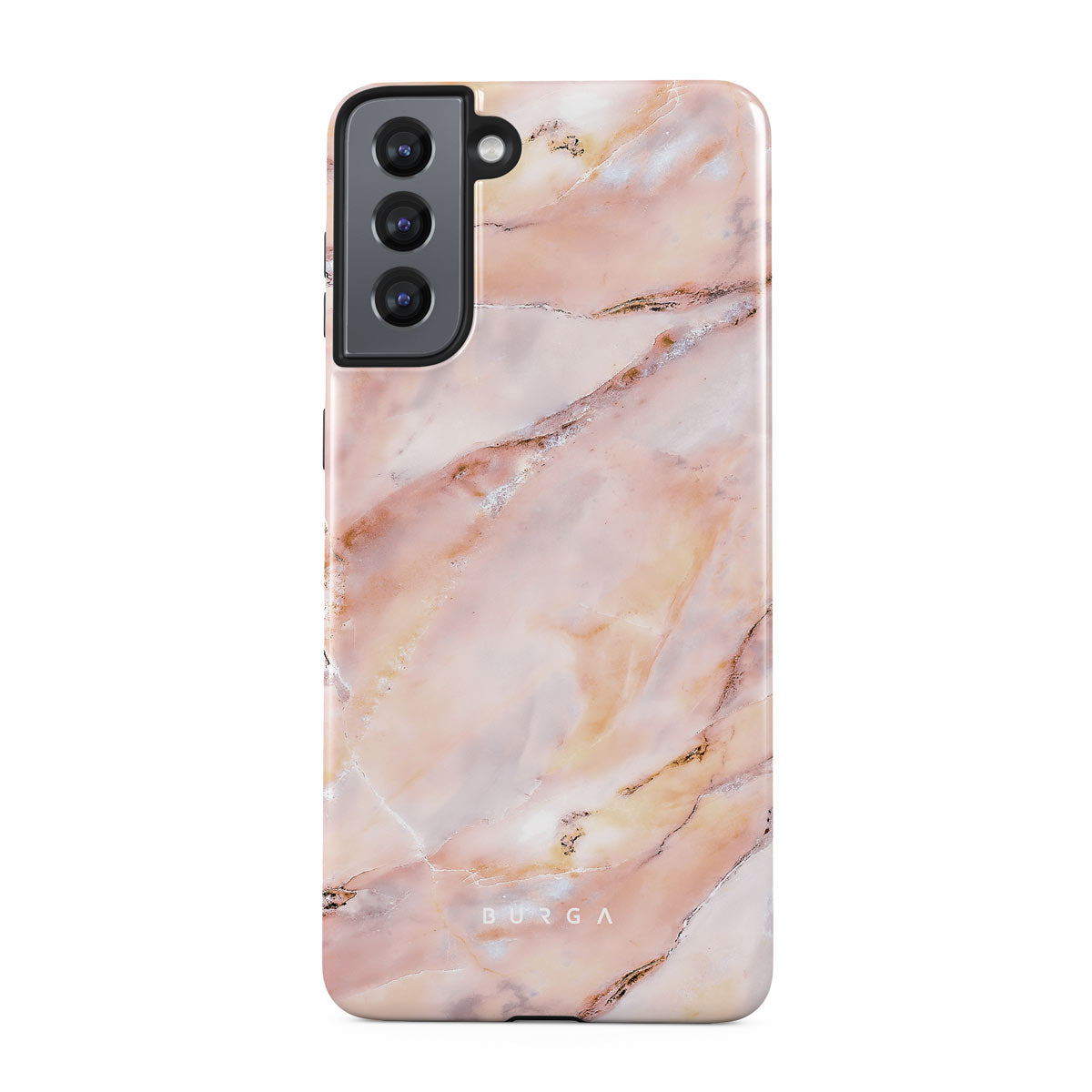 Morning Sunshine Samsung Galaxy S21 phone case features a timeless pastel marble design, inspired by the beauty of a sunrise. Soft hues of pink and orange will add warmth to your style. Keep your phone protected with sunshine in your pocket.