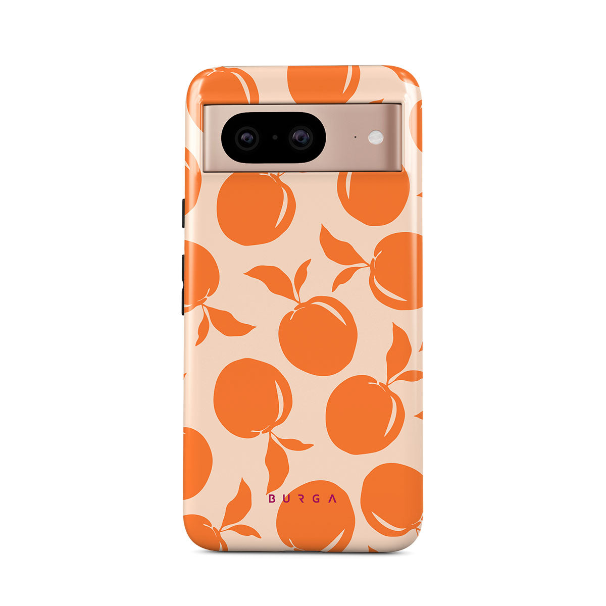 Picture a sun-soaked grove where ripe, juicy peaches glow with a radiant orange vibrance, their succulent aroma filling the warm air. Our Peach Fuzz design infuses your Google Pixel 8 phone case with a lively, sun-kissed charm, perfectly capturing the essence of carefree, joyful summer days.