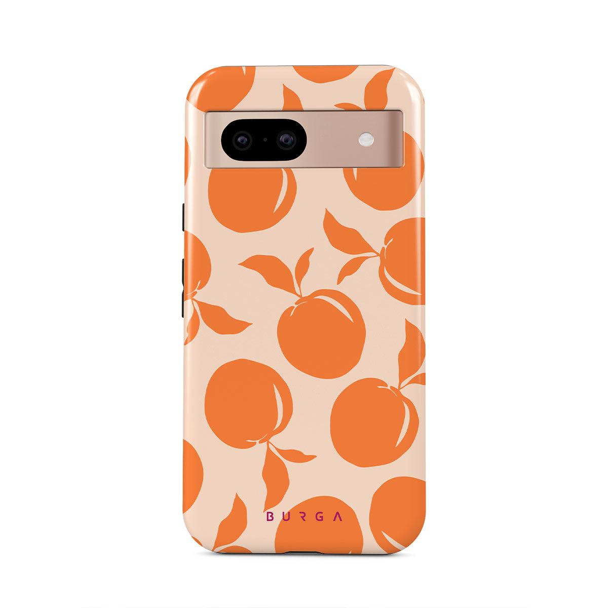 Picture a sun-soaked grove where ripe, juicy peaches glow with a radiant orange vibrance, their succulent aroma filling the warm air. Our Peach Fuzz design infuses your Google Pixel 8a phone case with a lively, sun-kissed charm, perfectly capturing the essence of carefree, joyful summer days.