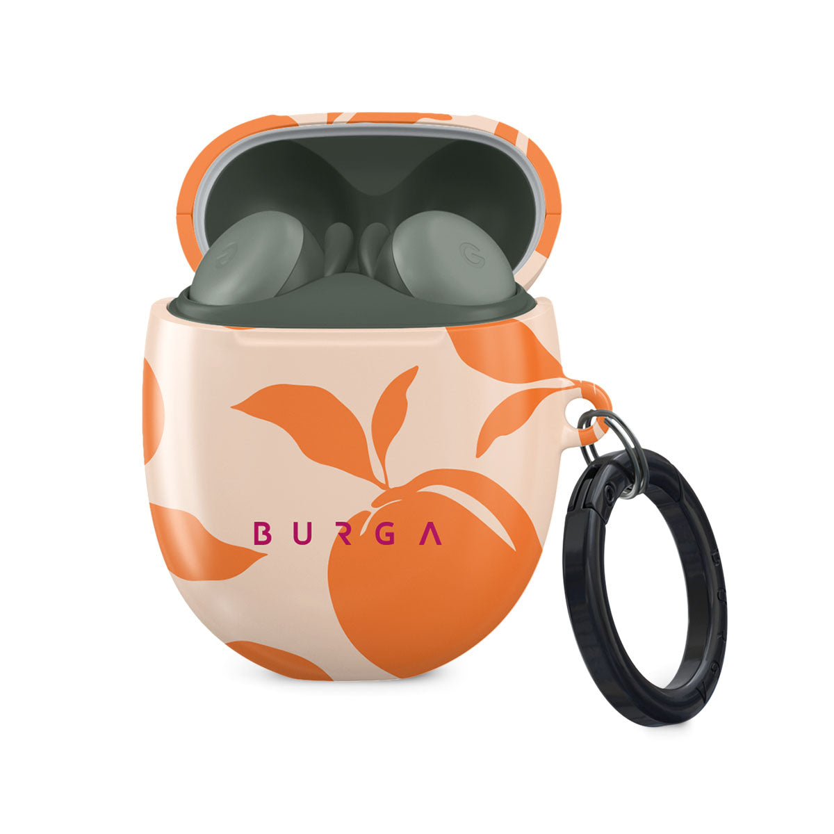 Picture a sun-soaked grove where ripe, juicy peaches glow with a radiant orange vibrance, their succulent aroma filling the warm air. Our Peach Fuzz design infuses your Google Pixel Buds A case cover with a lively, sun-kissed charm, perfectly capturing the essence of carefree, joyful summer days.