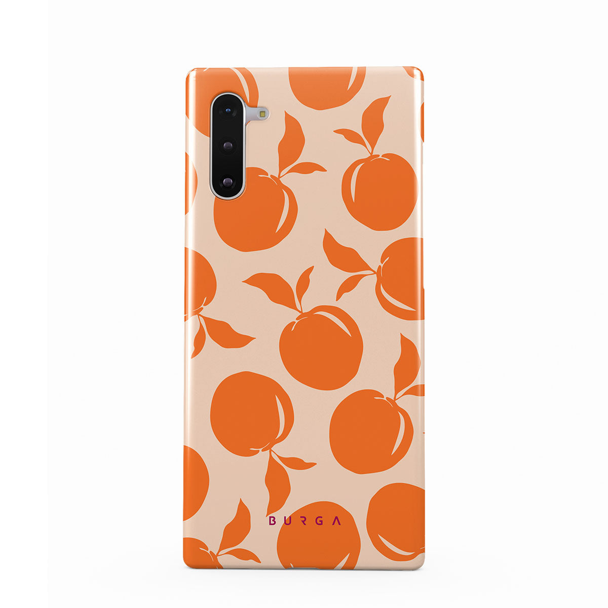 Picture a sun-soaked grove where ripe, juicy peaches glow with a radiant orange vibrance, their succulent aroma filling the warm air. Our Peach Fuzz design infuses your Samsung Galaxy Note 10 phone case with a lively, sun-kissed charm, perfectly capturing the essence of carefree, joyful summer days.