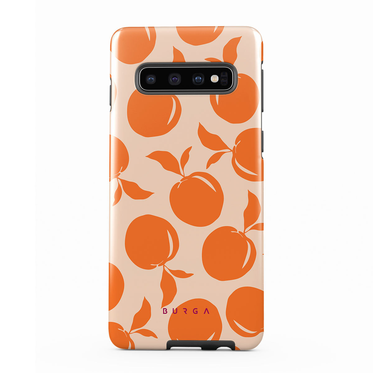 Picture a sun-soaked grove where ripe, juicy peaches glow with a radiant orange vibrance, their succulent aroma filling the warm air. Our Peach Fuzz design infuses your Samsung Galaxy S10 4G phone case with a lively, sun-kissed charm, perfectly capturing the essence of carefree, joyful summer days.