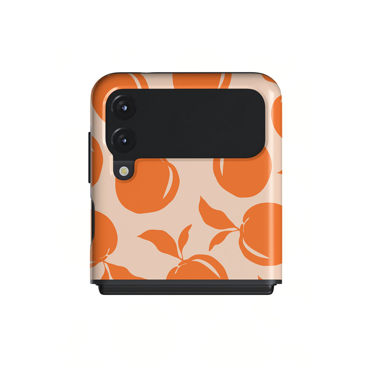 Picture a sun-soaked grove where ripe, juicy peaches glow with a radiant orange vibrance, their succulent aroma filling the warm air. Our Peach Fuzz design infuses your Samsung Galaxy Z Flip 3 phone case with a lively, sun-kissed charm, perfectly capturing the essence of carefree, joyful summer days.
