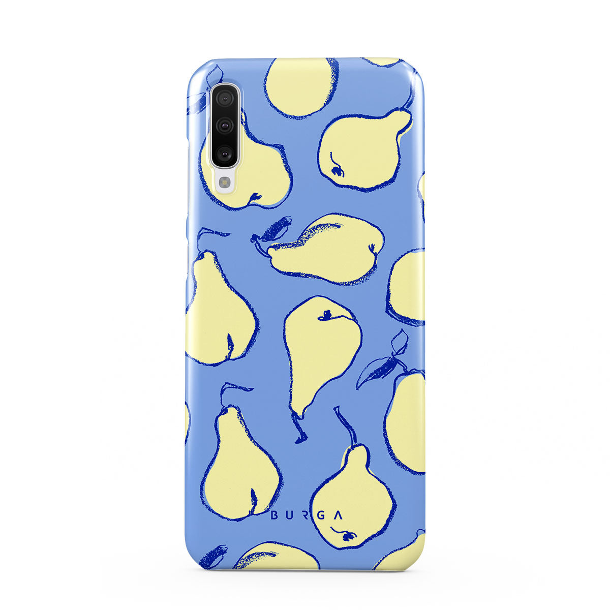 Step into a playful paradise with Pear Crush. Each pear is outlined with a lively, hand-drawn charm. This design brings a playful vibe to your Samsung Galaxy A70 phone case, perfect for those who love to embrace the lighter, more joyful side of life.