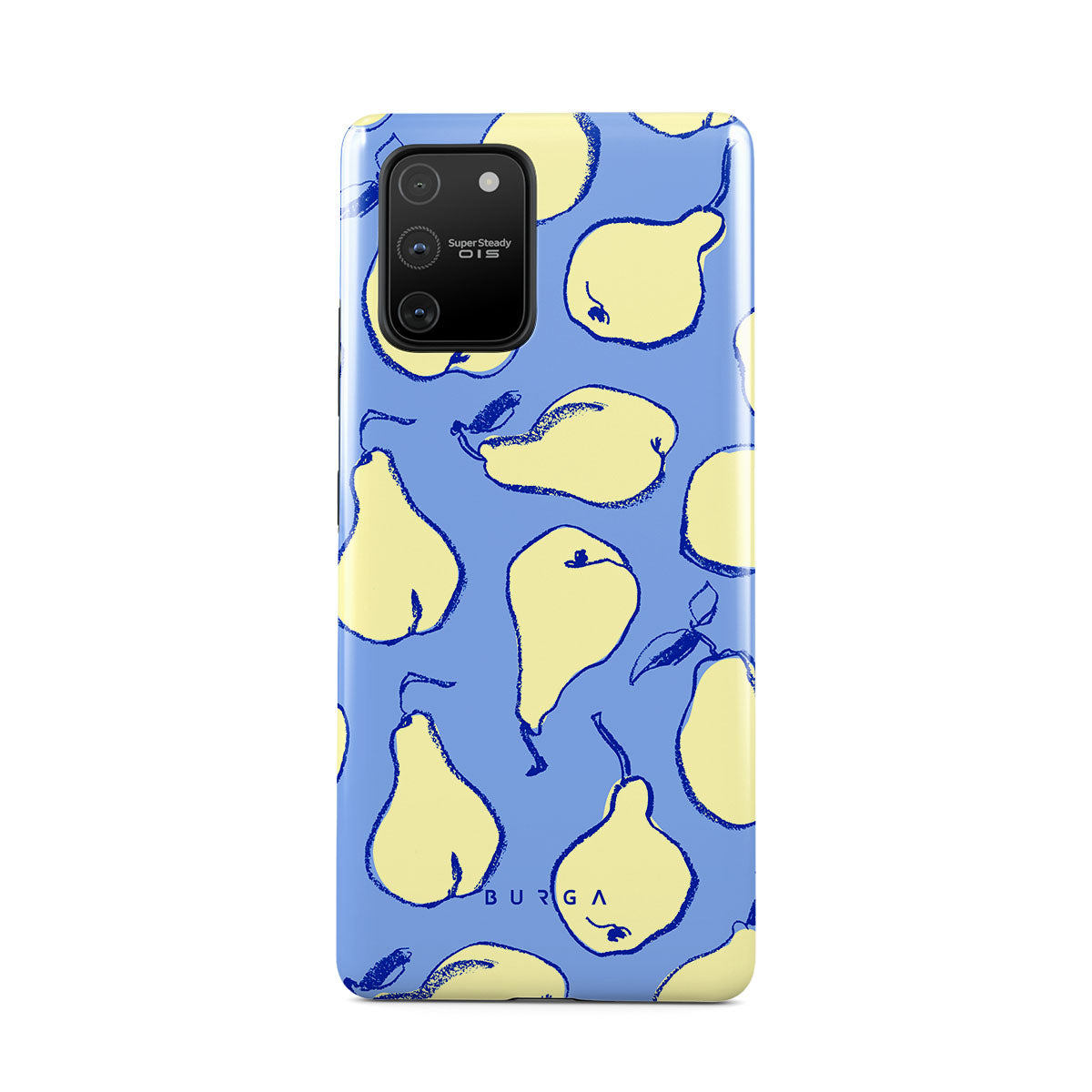Step into a playful paradise with Pear Crush. Each pear is outlined with a lively, hand-drawn charm. This design brings a playful vibe to your Samsung Galaxy S10 Lite phone case, perfect for those who love to embrace the lighter, more joyful side of life.