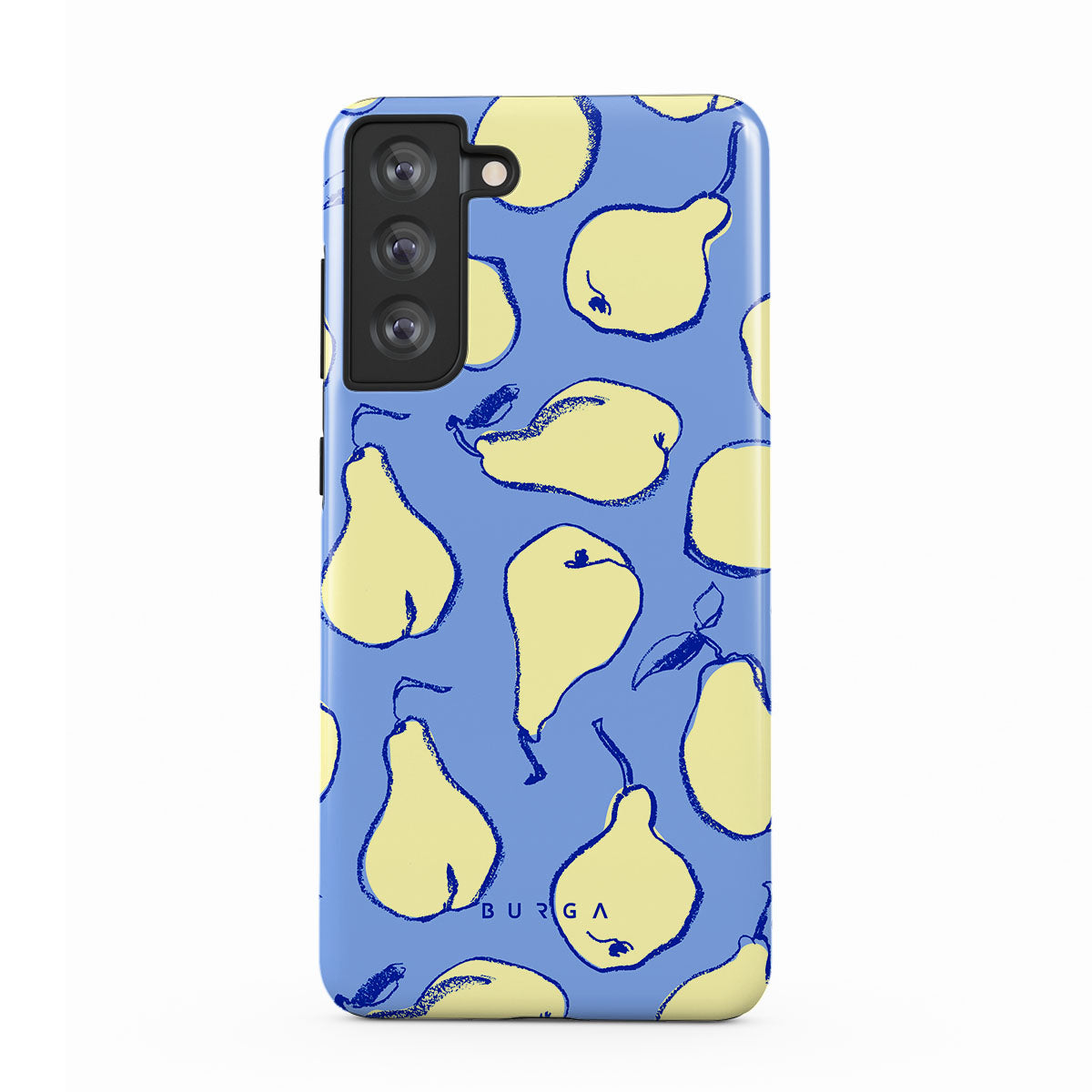 Step into a playful paradise with Pear Crush. Each pear is outlined with a lively, hand-drawn charm. This design brings a playful vibe to your Samsung Galaxy S21 FE phone case, perfect for those who love to embrace the lighter, more joyful side of life.